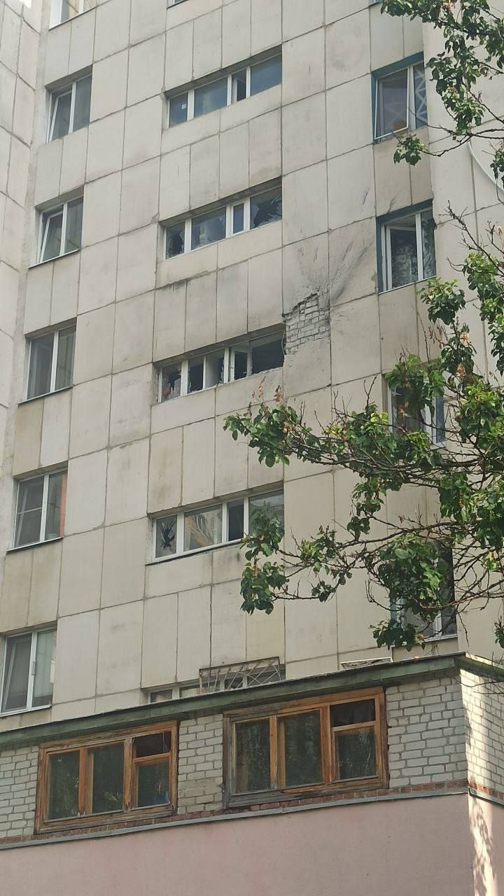 Около 16:35 "прилетело" в многоквартирный дом на Харьковской горе. Обошлось повреждением фасада и остекления в двух квартирах.