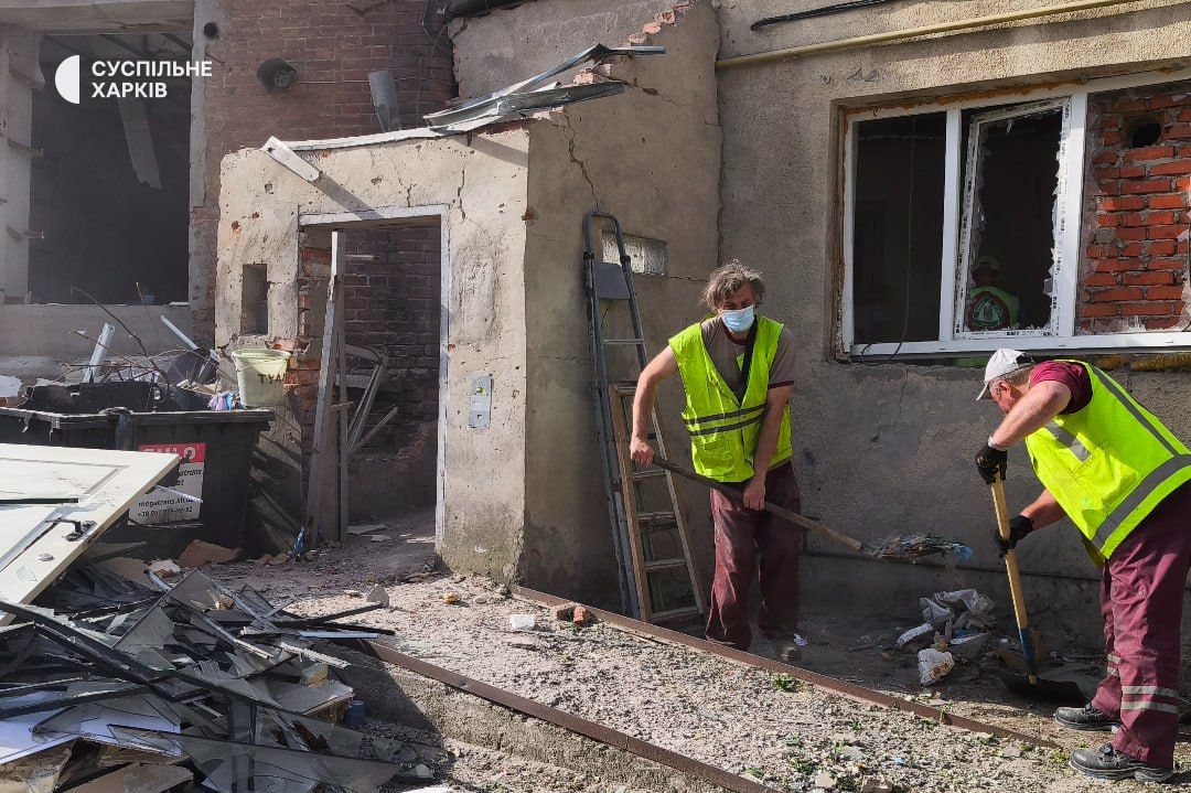 В результате ударов по Салтовскому району города произошли разрушения и пожары в четырехэтажном недействующем здании, стоматполиклинике, а также на крыше жилого дома,