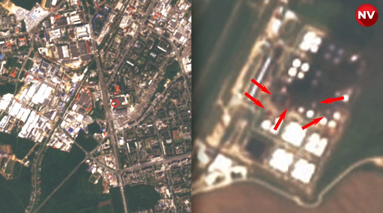 Спутниковые снимки после атаки на нефтебазу в Энгельсе и завод в Чебоксарах / Скриншот инфографики NV