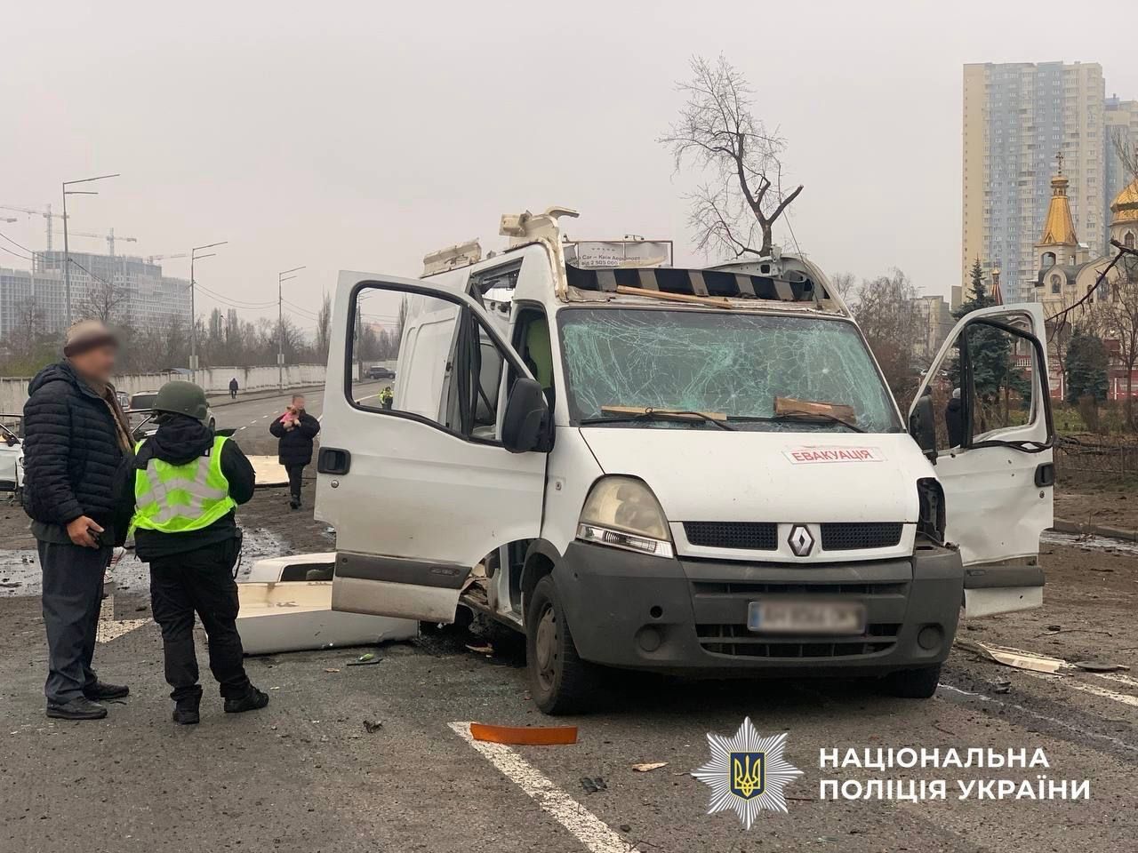 Во время массированной атаки обломками побило машины на ходу в Дарницком районе, люди в этот момент ехали по своим делам.