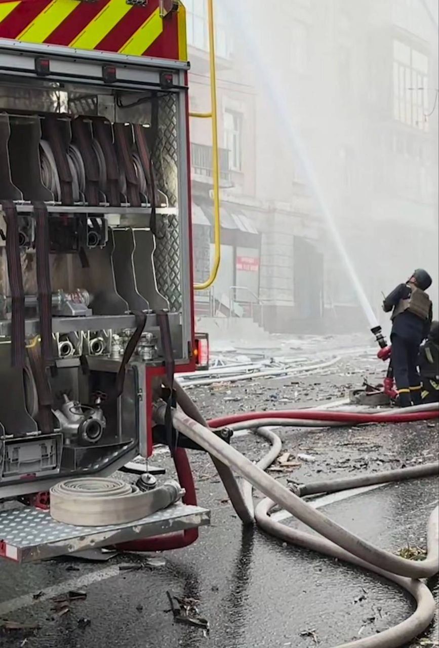 - Соломенский район – пожары охватили административные и складские здания. В одном из зданий до сих пор продолжается ликвидация последствий обстрела.