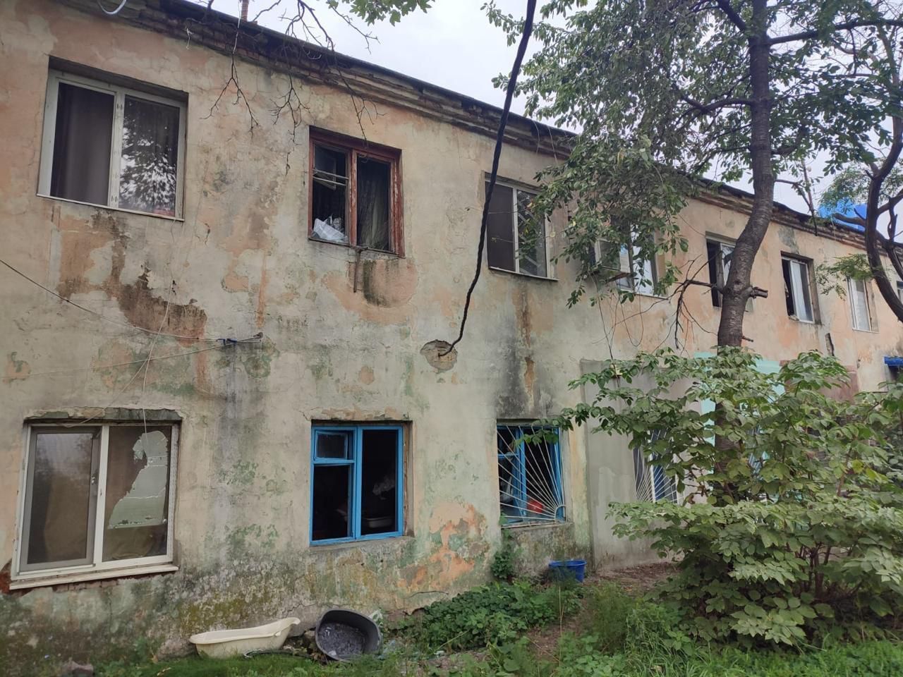 В результате удара пострадало бывшее общежитие