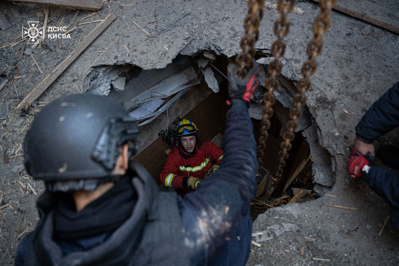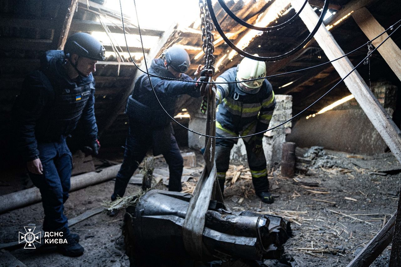 24 Канал пишет со ссылкой на ГСЧС Украины, что часть ракеты вытаскивали спасатели вместе с пиротехниками. Кстати, Россия атаковала Киев "Кинжалами", "Цирконом", "Калибрами" и "Шахедами".