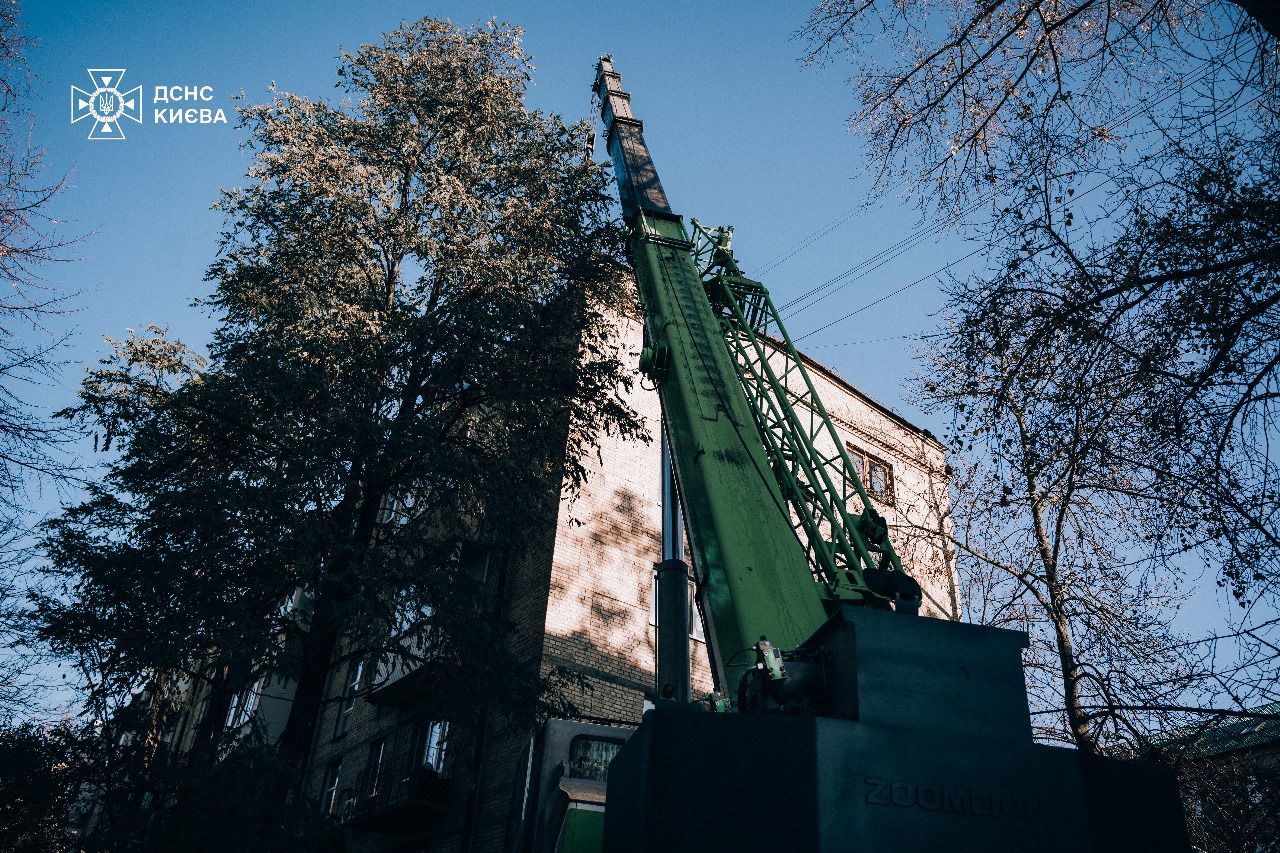 С помощью крана, чрезвычайники столицы вместе с пиротехническим подразделением Мобильного спасательного центра быстрого реагирования ГСЧС Украины изъяли часть ракеты, которая попала в жилую пятиэтажку в результате утренней атаки,
