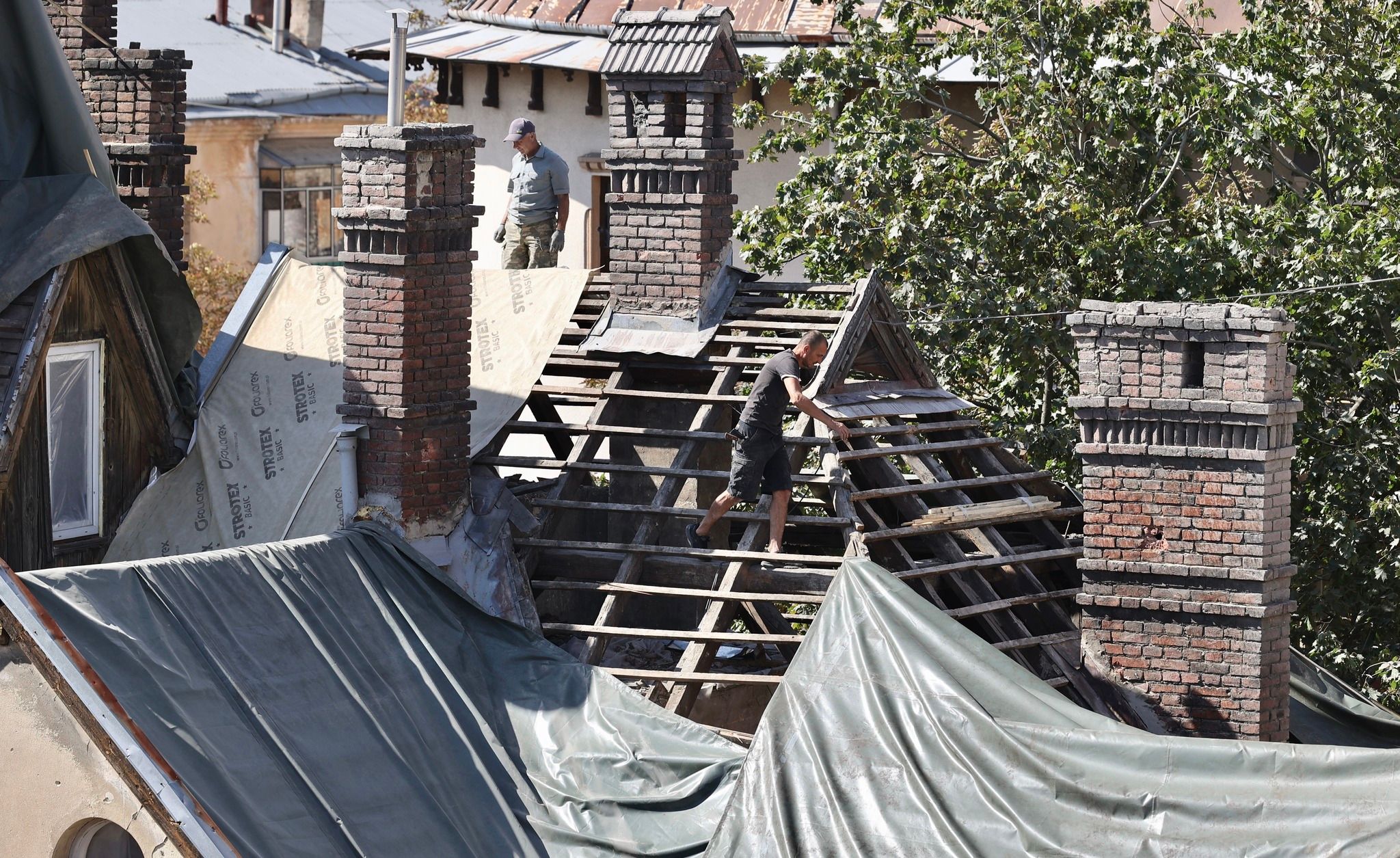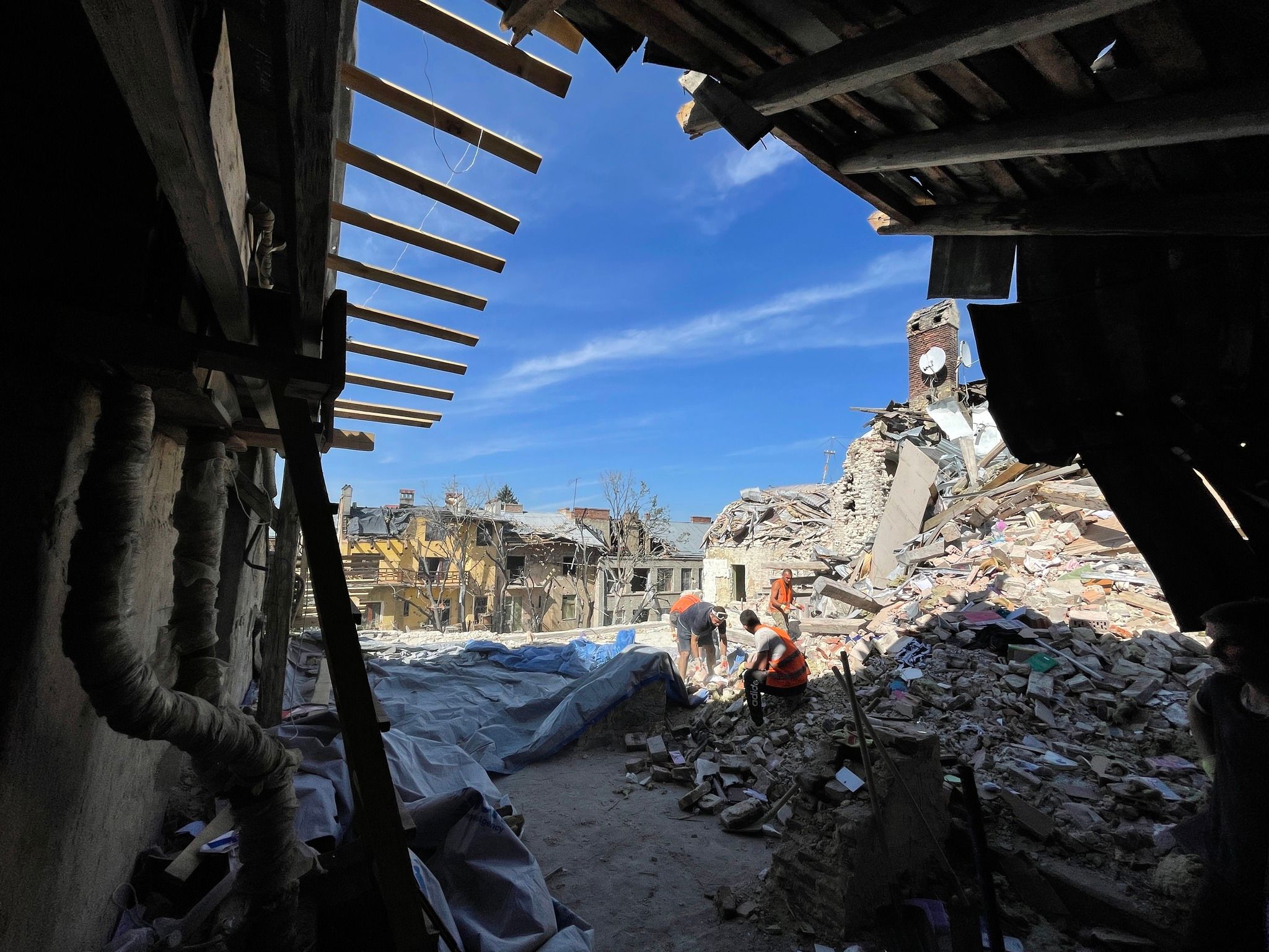 Андрей Садовый сообщил, что сразу после завершения поисково-спасательных работ, коммунальщики начали разбирать завалы и перекрывать уничтоженные крыши.