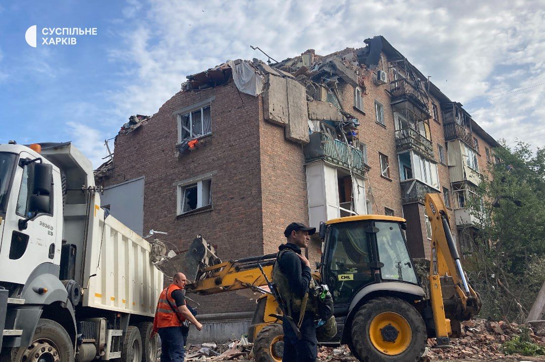 Начальник управления ГСЧС Харьковщины Артем Астахов в комментарии Суспильному сообщил, что сейчас спасатели расчищают площадку, чтобы зашли автокраны – они будут поднимать плиты, которые упали внутрь дома