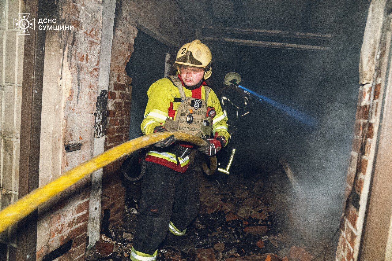 14 июля вражеские БПЛА атаковали один из объектов гражданской инфраструктуры города Сумы. Произошло частичное разрушение нежилого здания с последующим возгоранием. Горение происходило как внутри помещения, так и кровли. Несмотря на все сложности, спасателям удалось ликвидировать пожар.