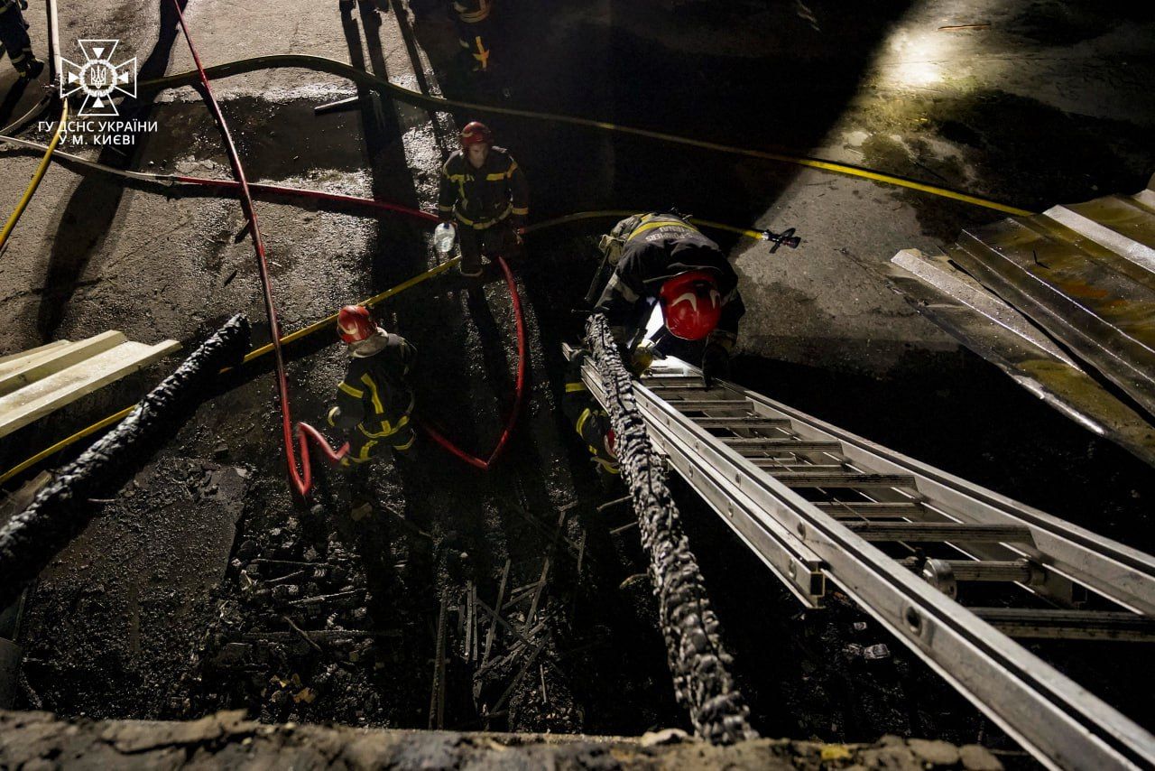 Последствия ночной атаки Киева / Фото ГСЧС и КГВА