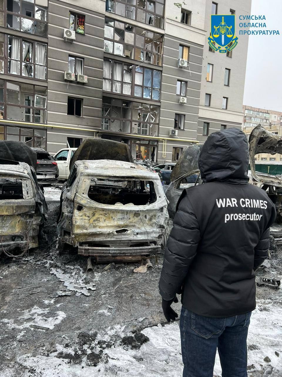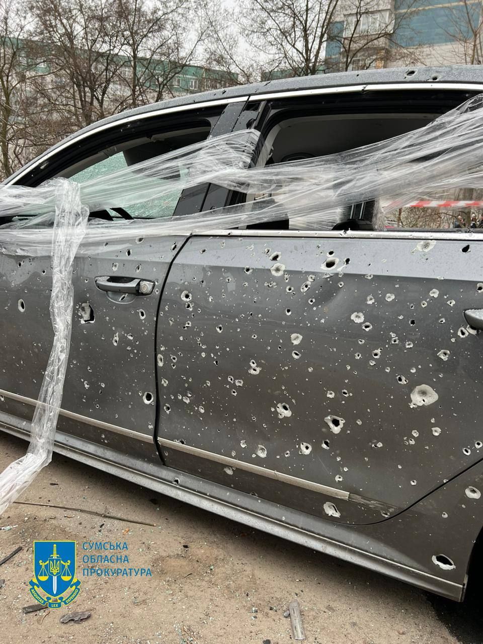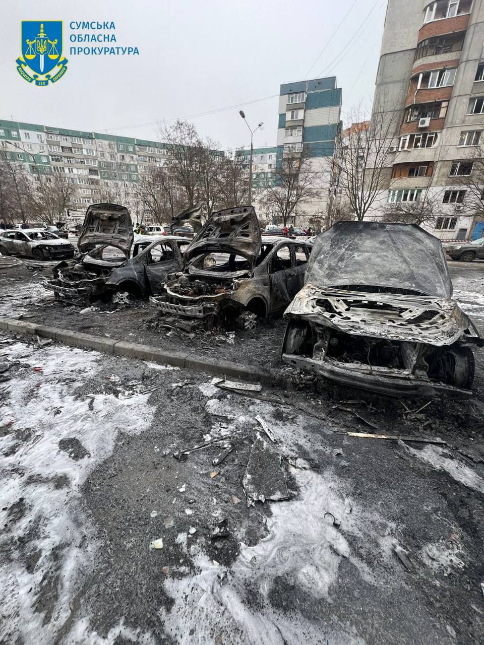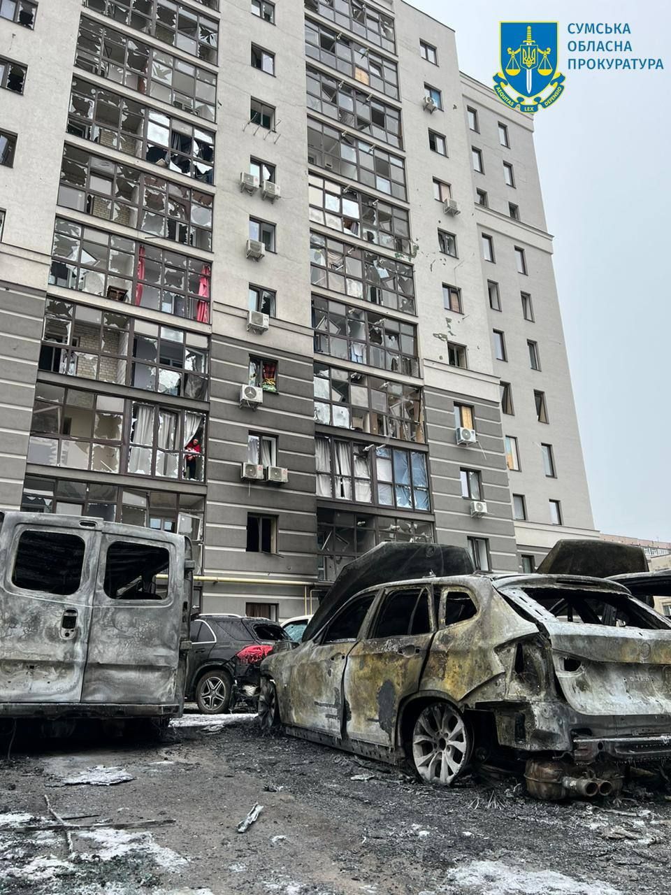 Так, 9 февраля около 22:50, вражеский беспилотник попал в автомобильную стоянку, которая находится во дворе многоквартирного жилого дома в городе Сумы.