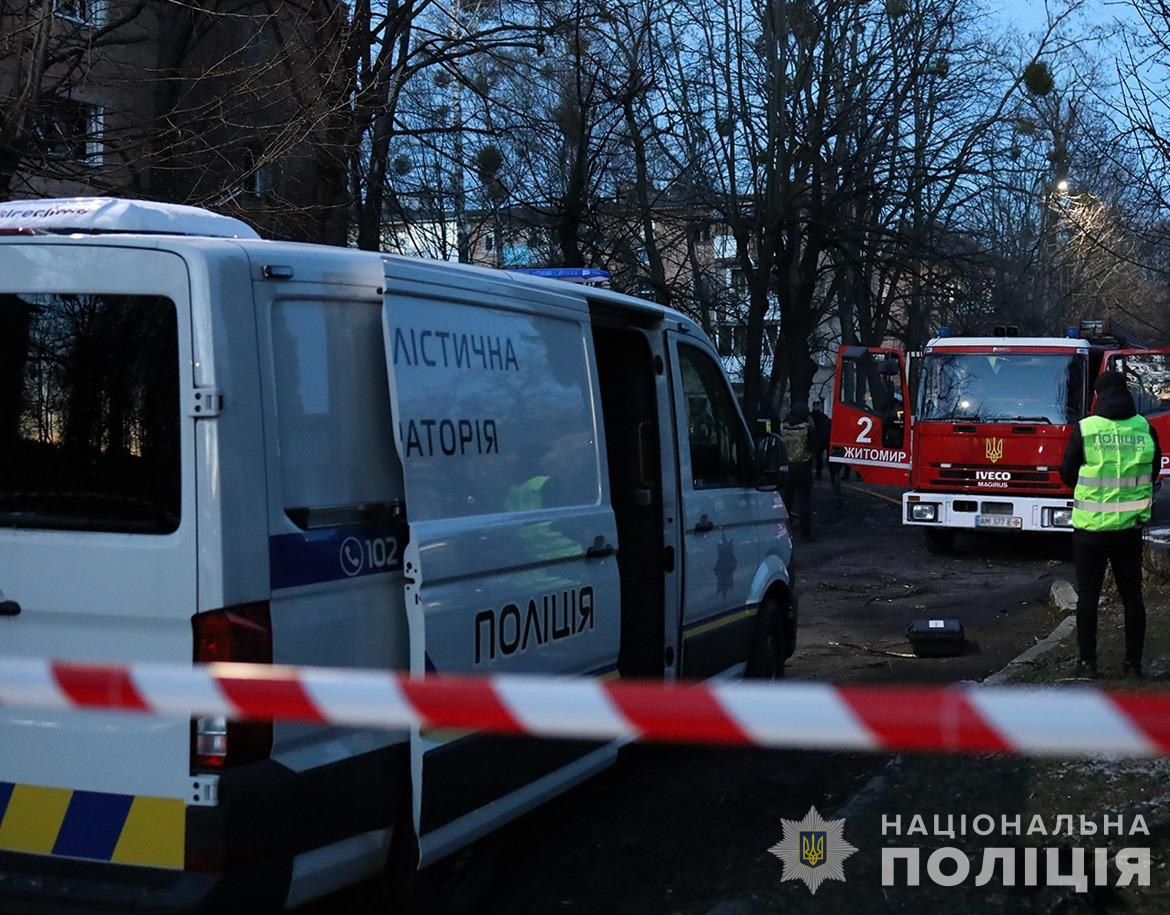 СБУ начала уголовное производство по факту атаки БпЛА на Житомирщину. Обстрел квалифицировали как военное преступление. Сейчас правоохранители продолжают обследовать территорию.