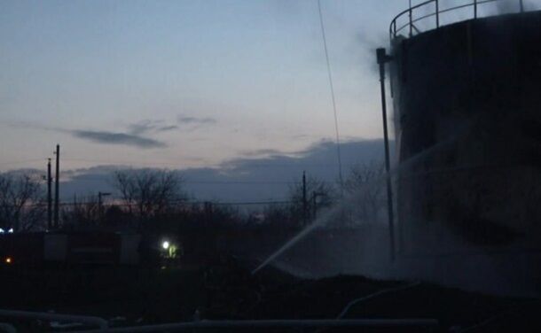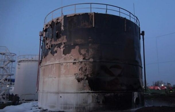 В результате атаки беспилотного летательного аппарата произошла разгерметизация с последующим горением резервуара на объекте ООО ТД "Ровеньковская нефтебаза",