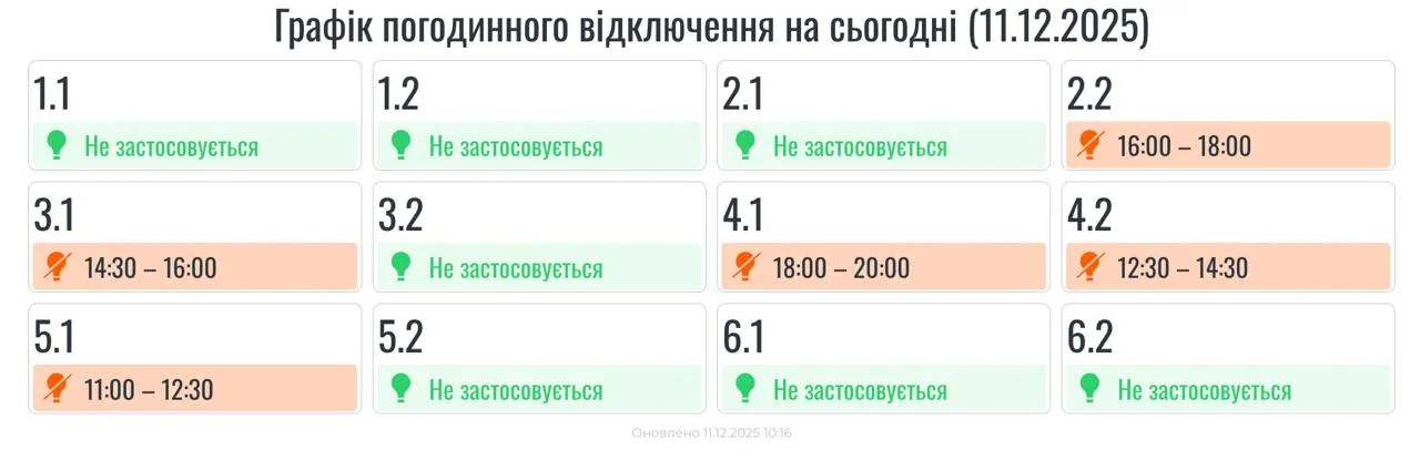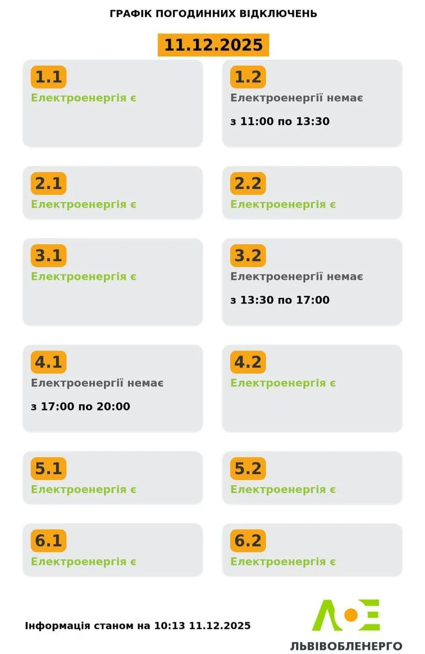 Актуальная информация о графиках отключения, а также принадлежность к очередям опубликована на сайте Тернопольоблэнерго.