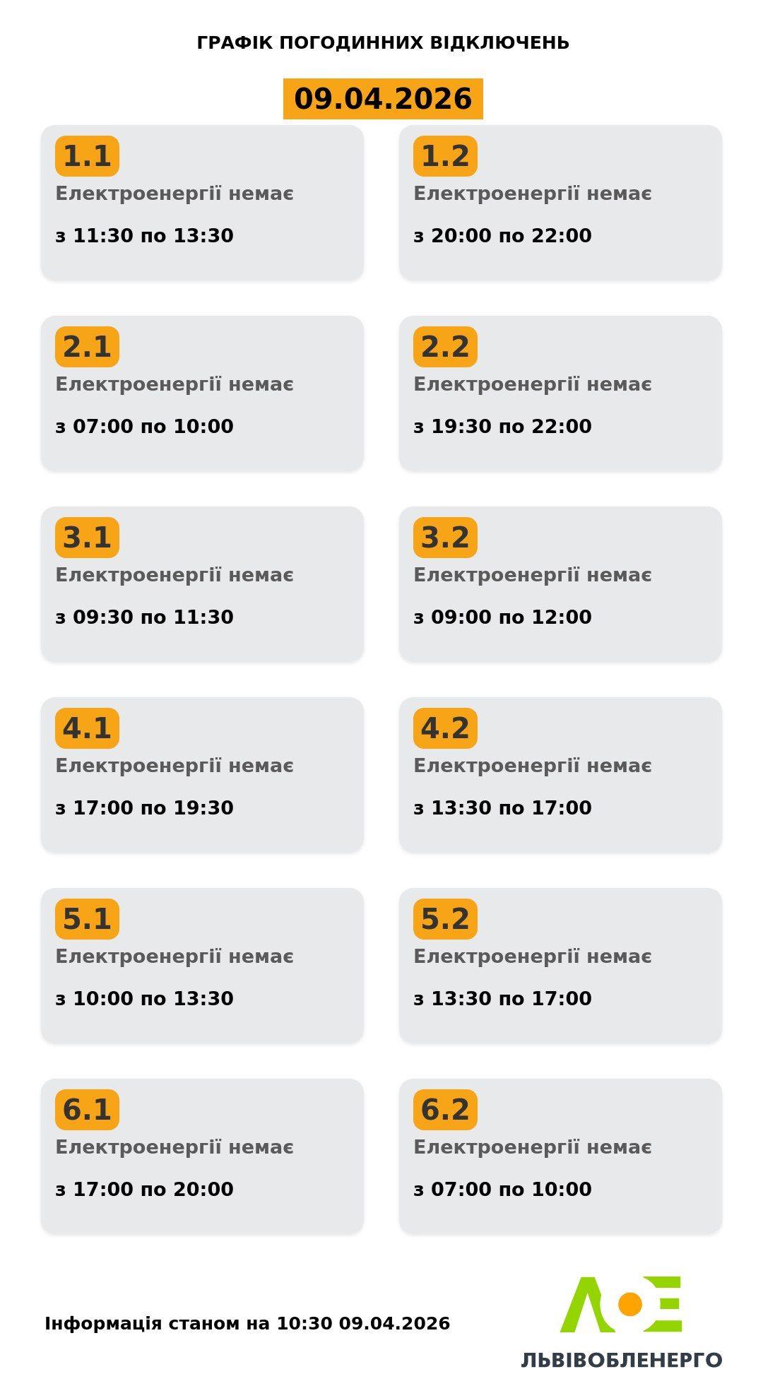 Узнать свою группу (очередь) отключений можно на сайте ЧАО "Львовоблэнерго".
