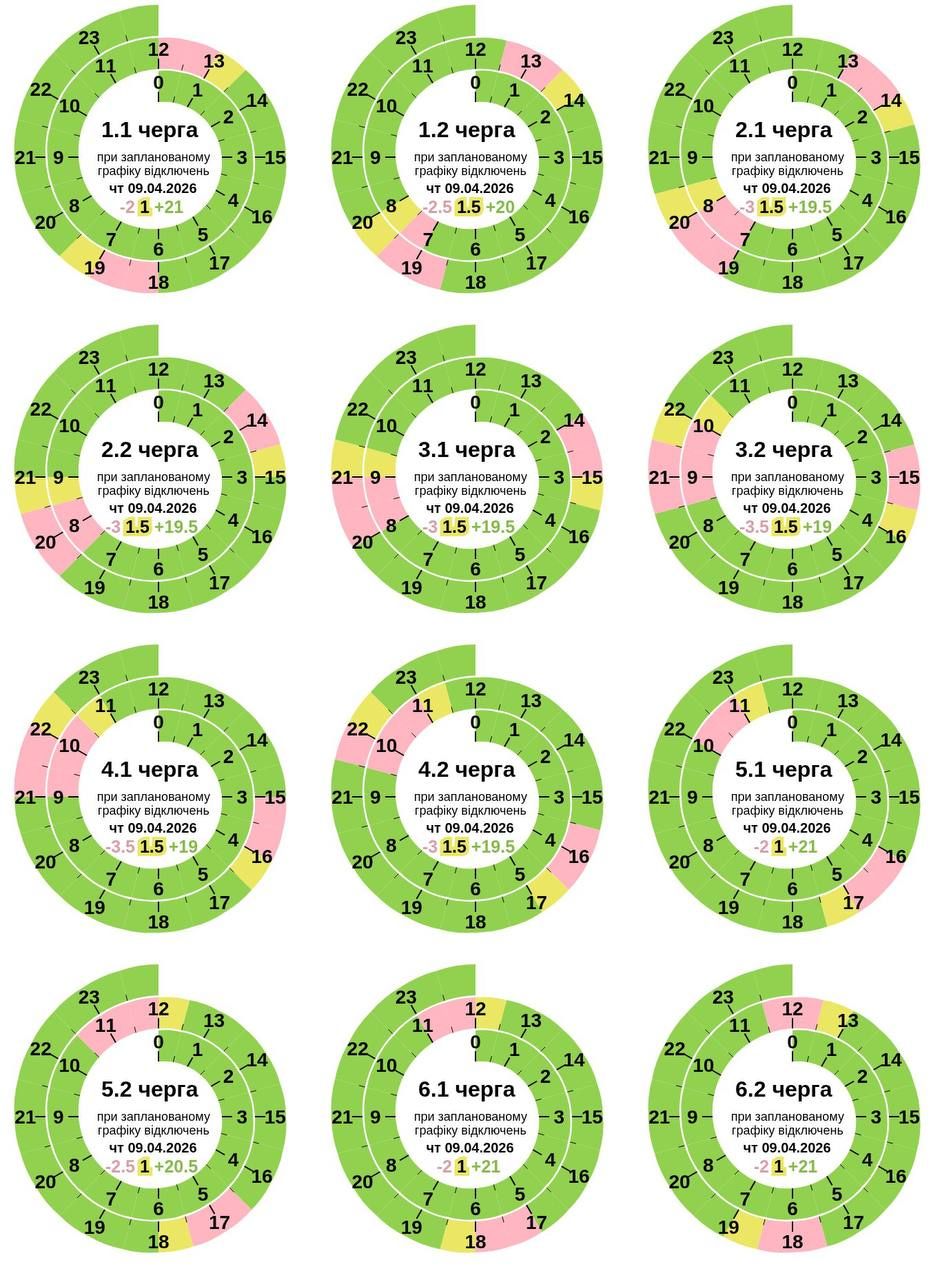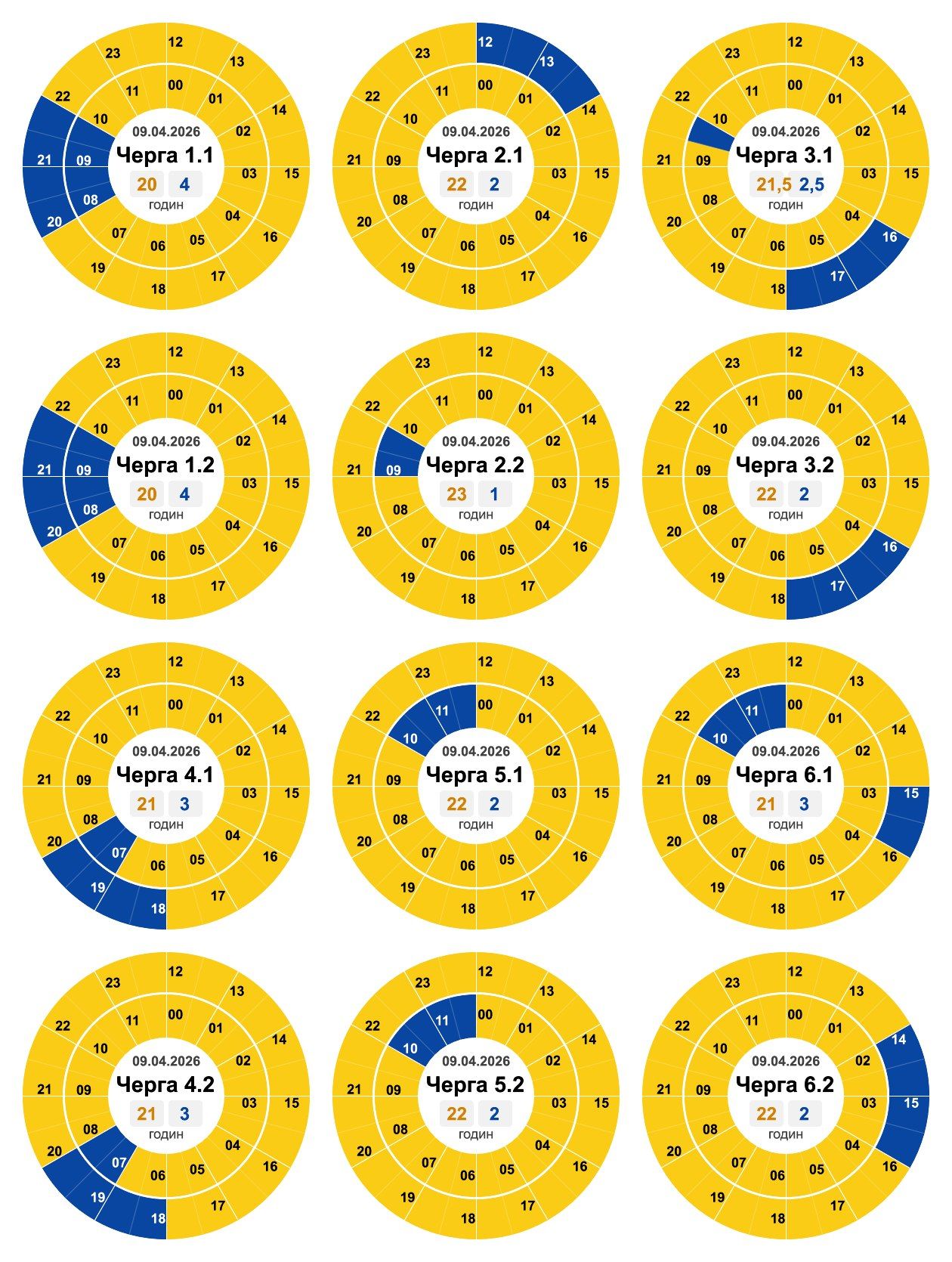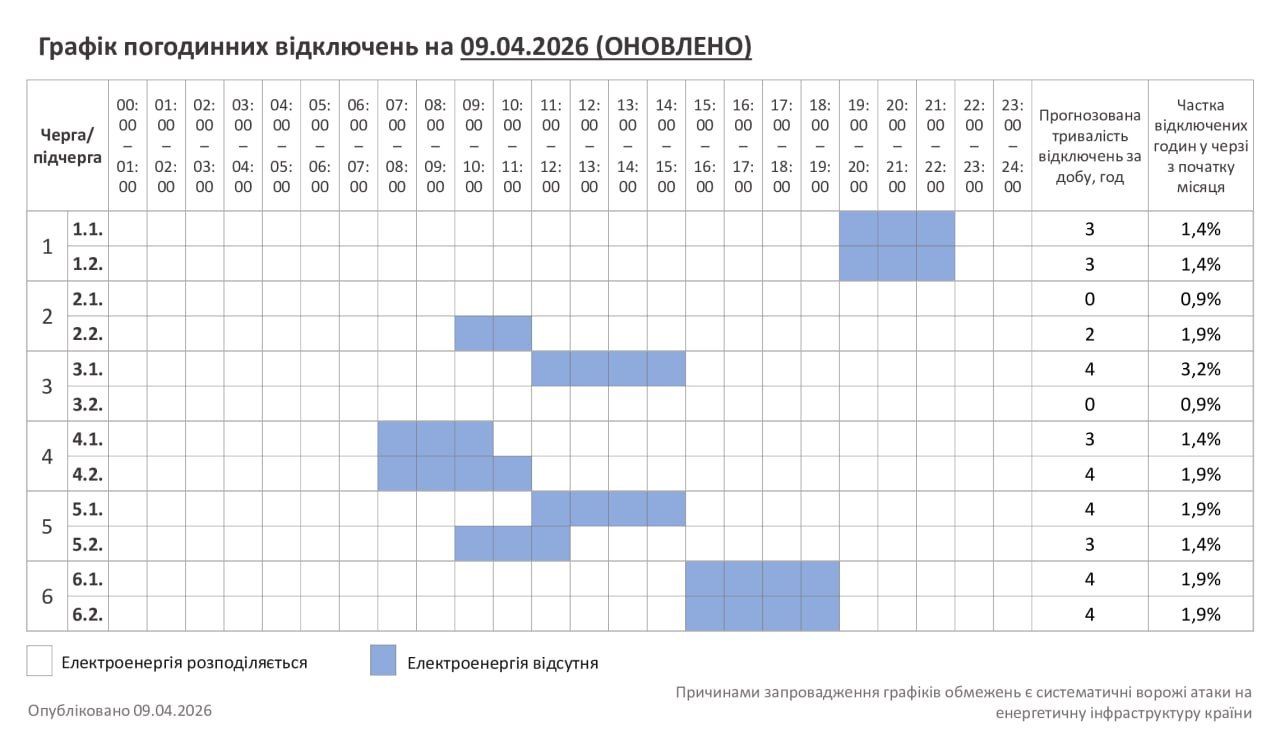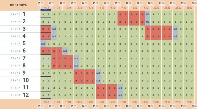 График почасовых отключений на 10 апреля по команде Укрэнерго.