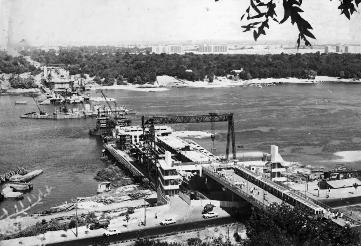 Готовая станция метро "Днепр" и строительство моста / Архивное фото начала 1960-х годов
