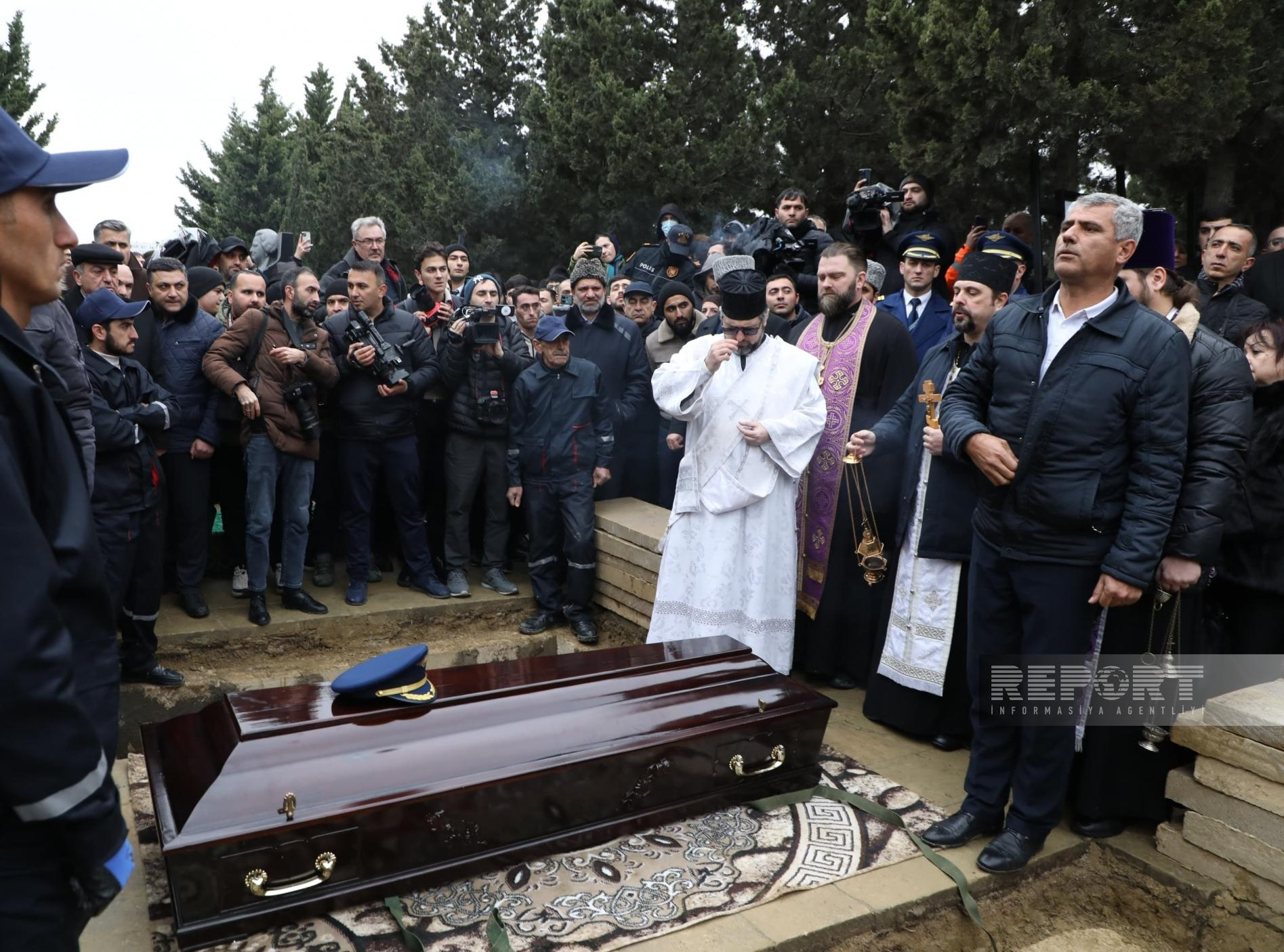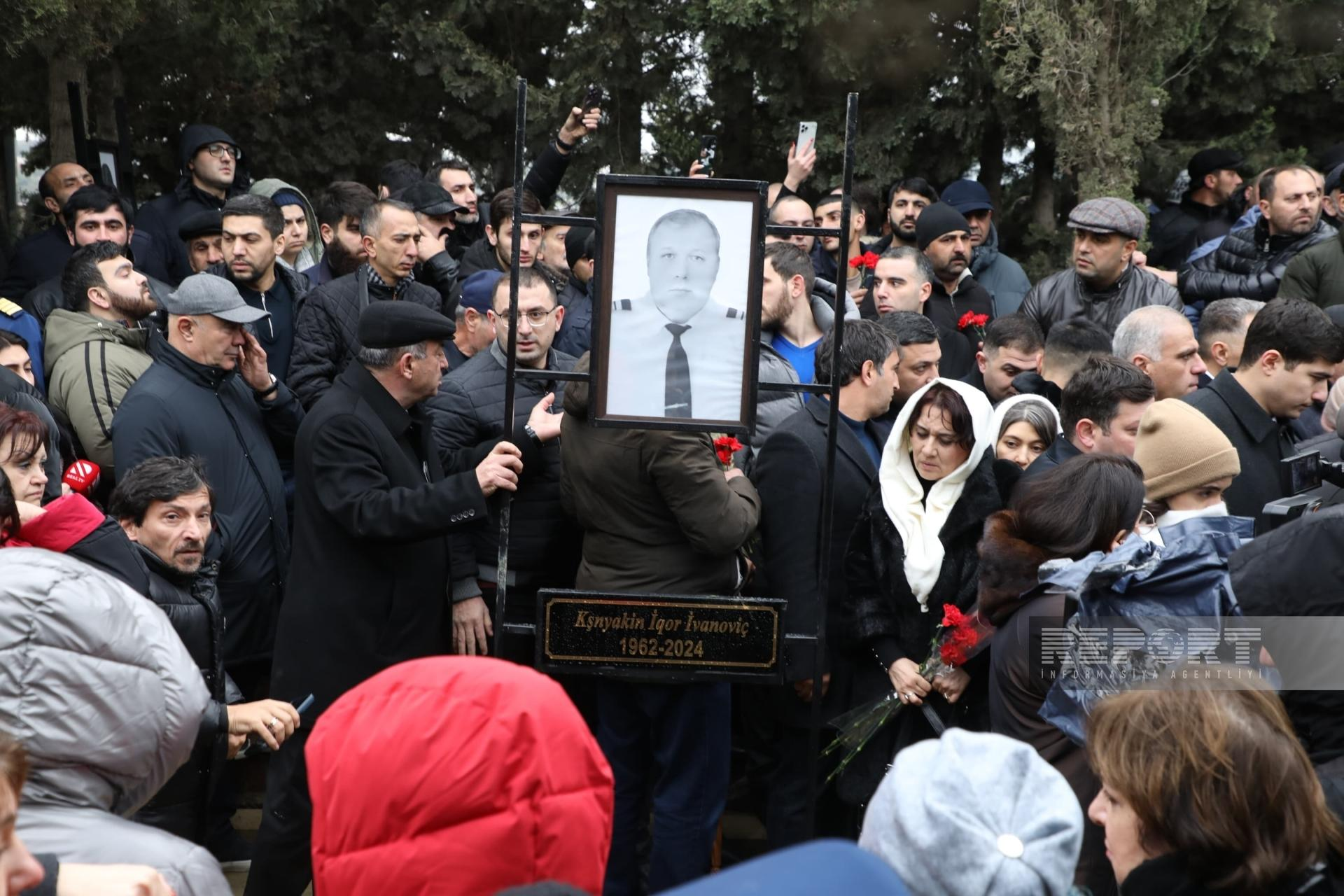 На II Аллее почетного захоронения в Баку состоялась церемония прощания с капитаном самолета Игорем Кшнякиным, вторым пилотом Александром Кальяниным и бортпроводницей Хокюмой Алиевой, которые трагически погибли в результате авиакатастрофы в Актау.