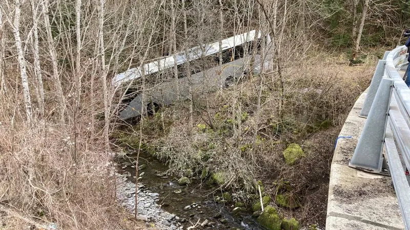 Во Франции автобус упал в овраг: смотрите фото из издания franceinfo