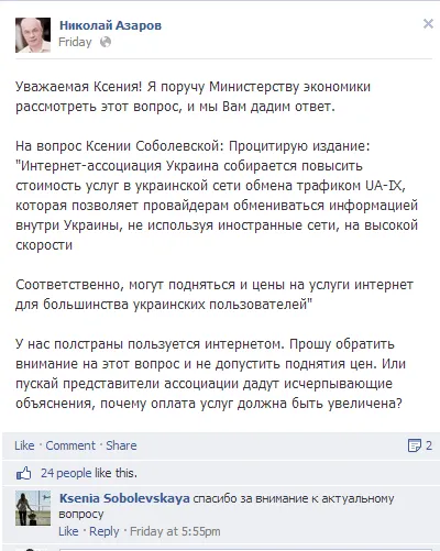 К слову, Николай Азаров является достаточно активным пользователем Facebook - он регулярно проводит интернет-встречи с украинцами именно в этой соцсети.