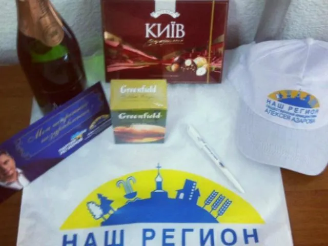 Подарки делались по случаю Дня фармацевта. Кандидат подарил специалистам набор из бутылки шампанского, коробки конфет, упаковки чая, открытки и кепки с агитацией за кандидата.