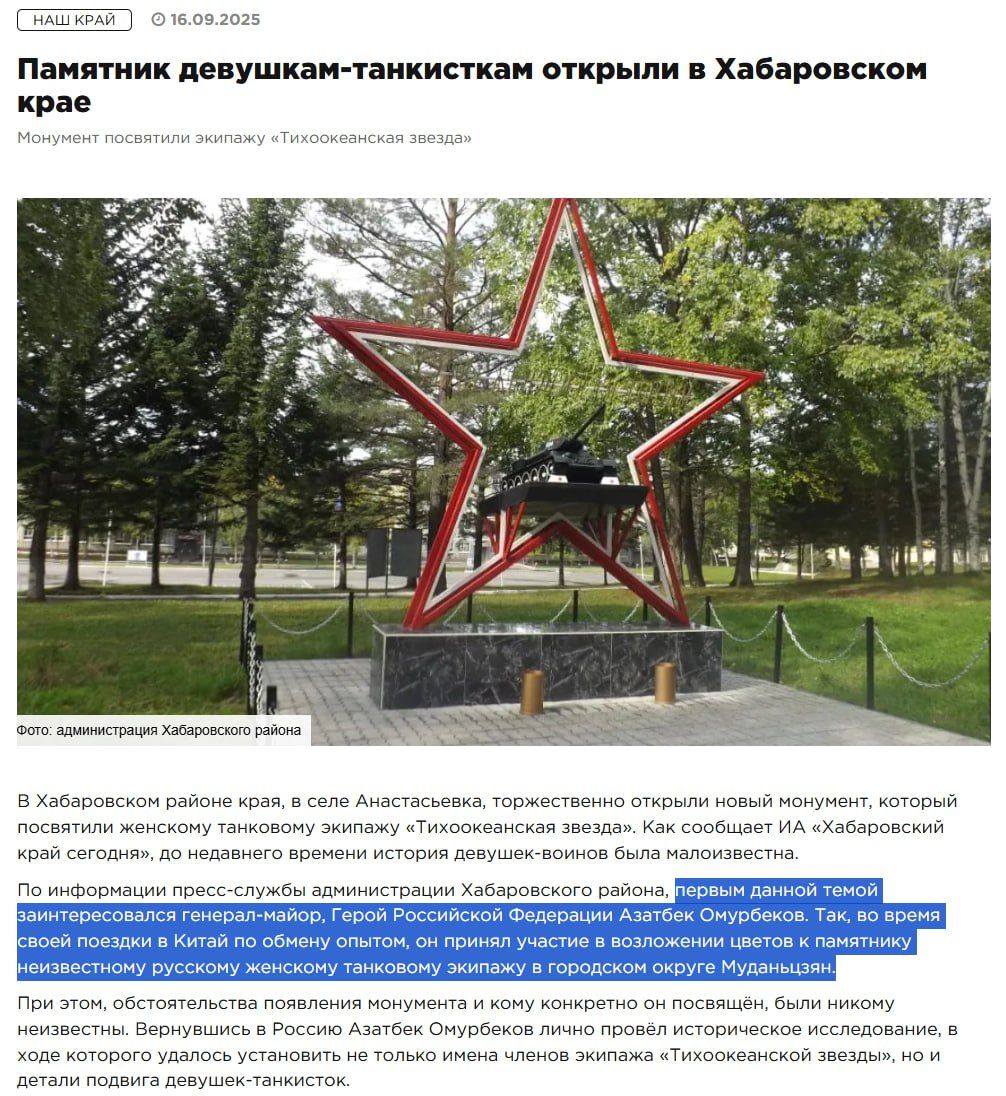 Азатбека Омурбекова заметили в Хабаровском крае на открытии "памятника танкисткам" / Фото InformNapalm