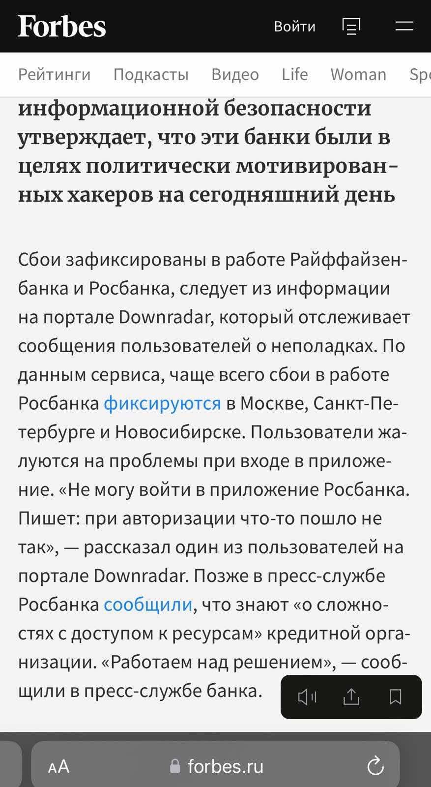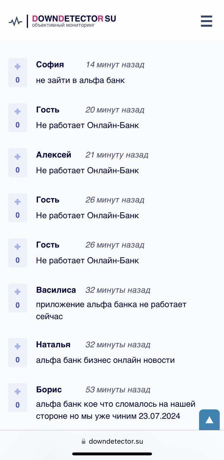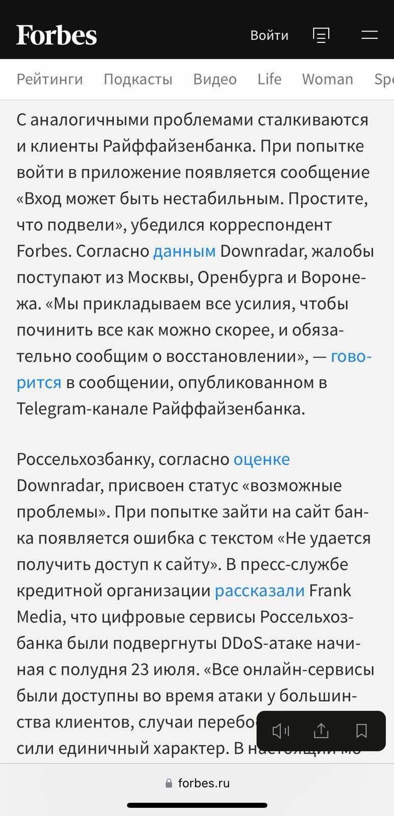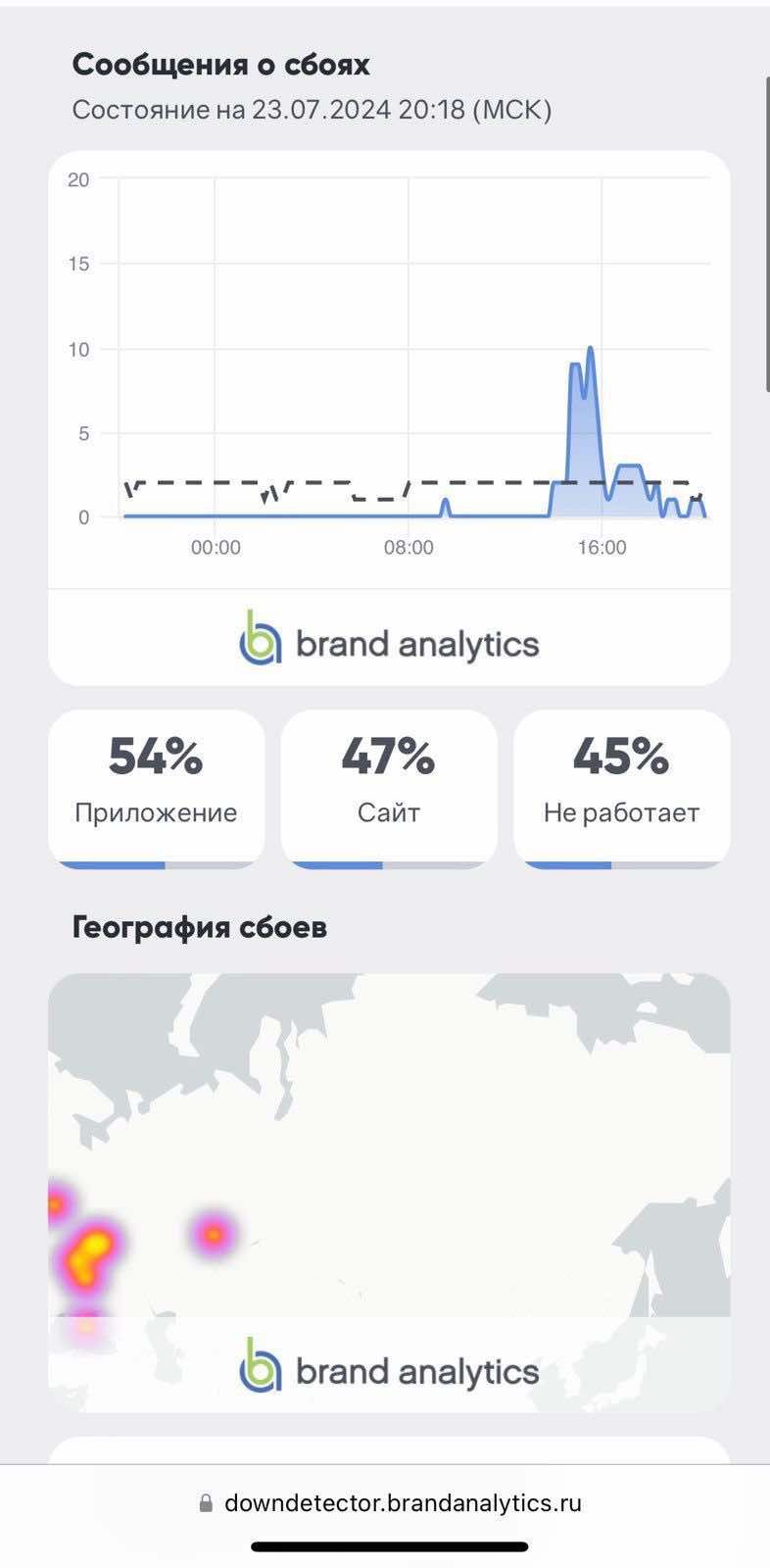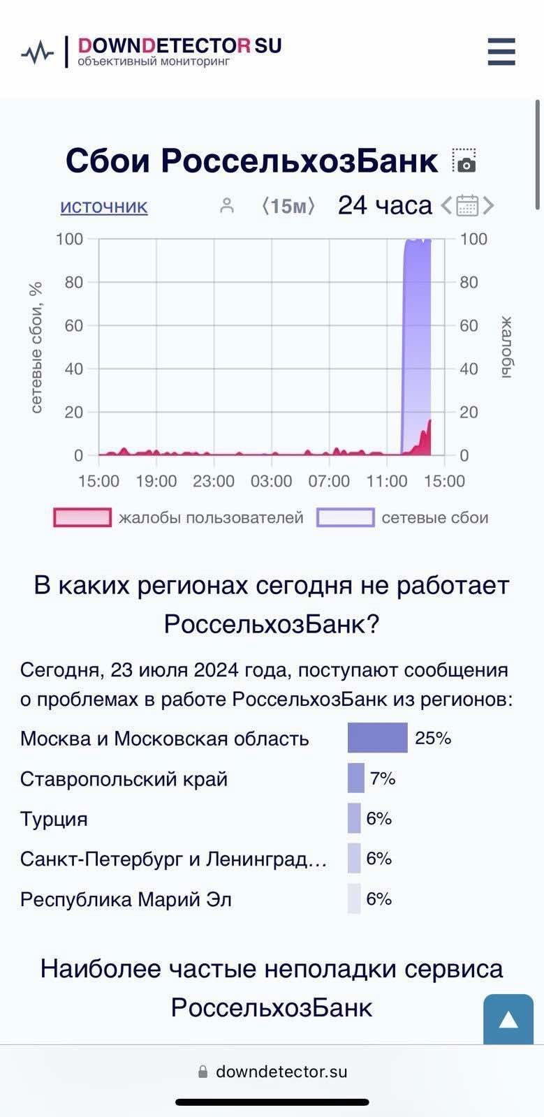 Пользователи на всей территории России жалуются на то, что не могут воспользоваться цифровыми услугами сразу ряда основных банковских учреждений. В частности, онлайн-сервисы не работают или существенно деградировали в "Альфа-банке", "Сбербанке", Райффайзен банке, ВТБ Банке, РСХБ Банке, Газпромбанке, Т-Банке, онлайн-банкинге iBank.