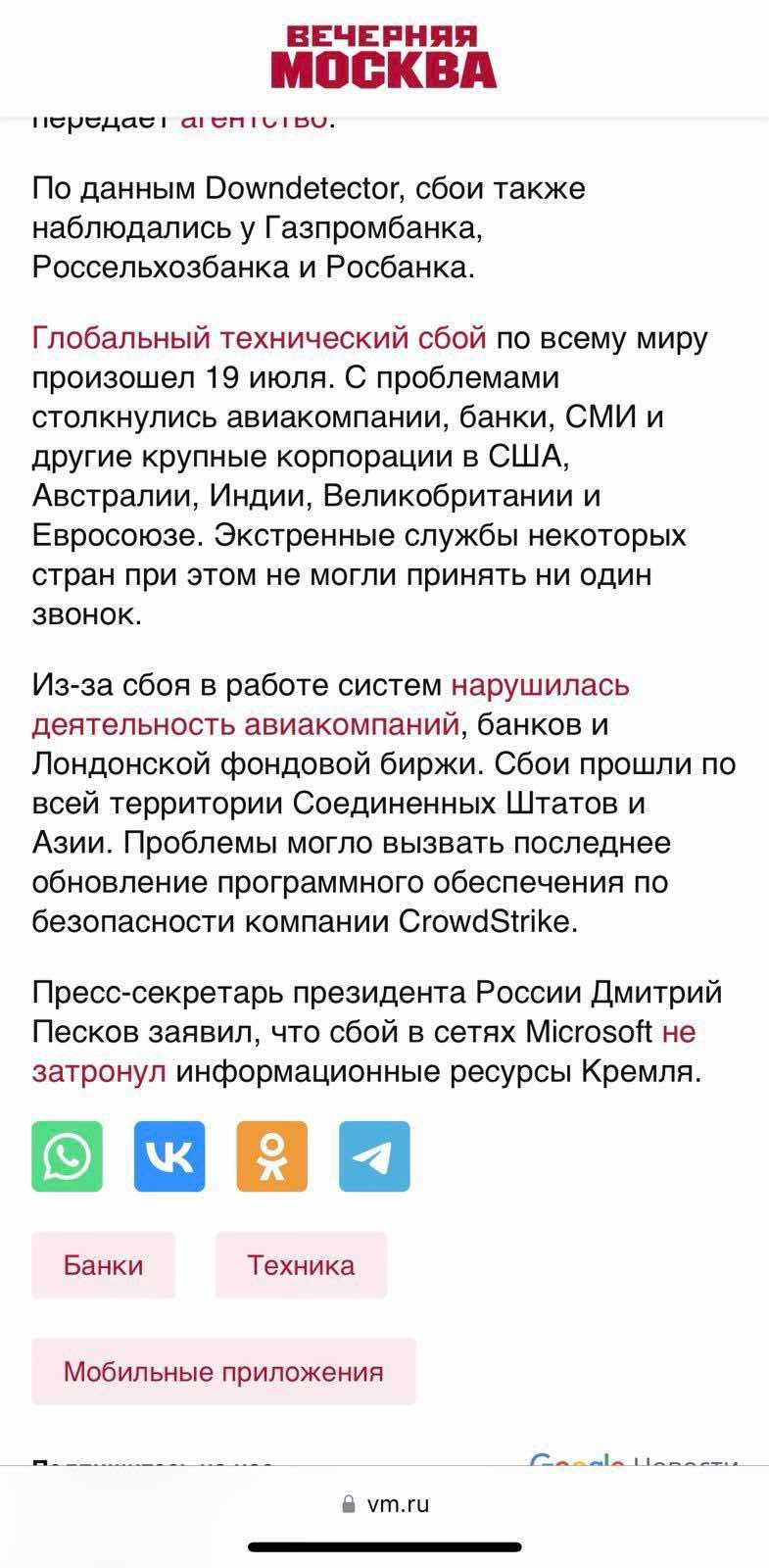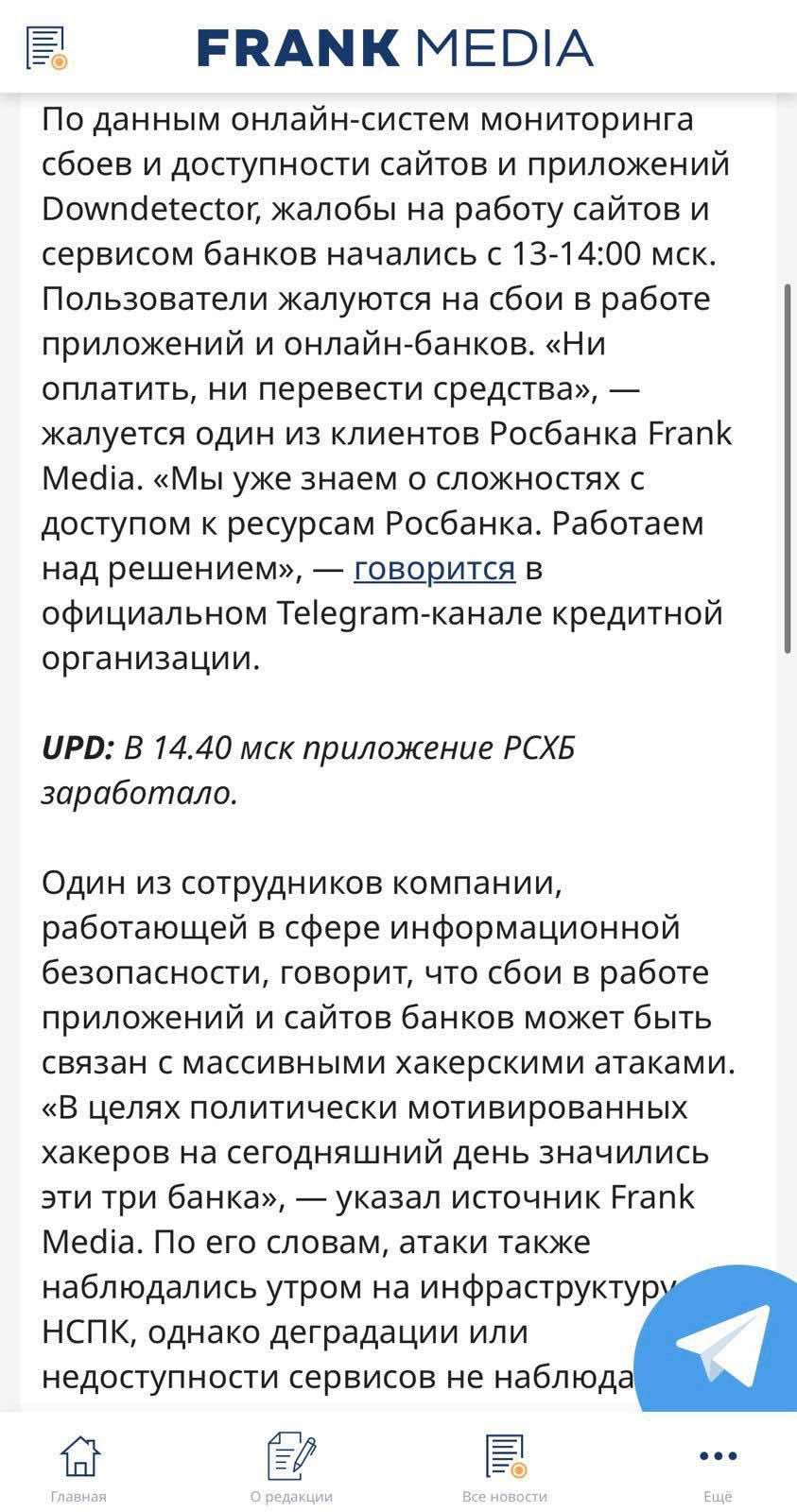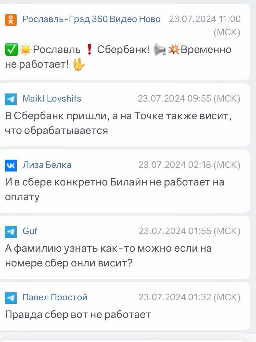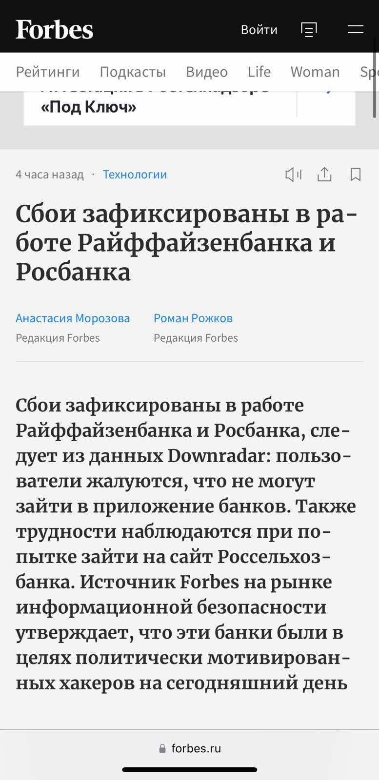 Кроме того, заблокирована или ощутимо нарушена работа национальных платежных систем россиян – Системы быстрых платежей "СБП" и Национальной системы платежных карт "НСПК". Российские пользователи в соцсетях также массово жалуются на невозможность воспользоваться мобильной связью или мобильным интернетом от "Билайн", "Мегафон", "Теле2" и "Ростелеком".