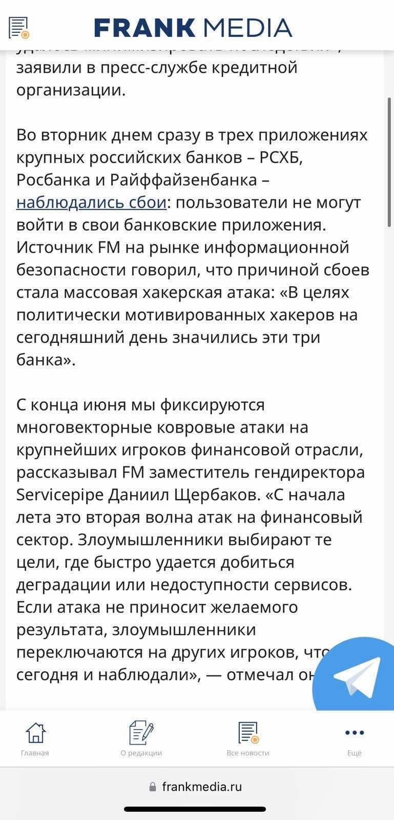 В России массированная кибератака на банковскую систему