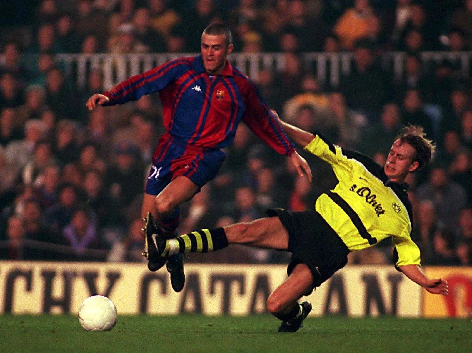 Их первая лобовая встреча была сразу в финале Суперкубка УЕФА-1997/1998. Уже в первом матче "блаугранас" создали себе комфортное преимущество в два мяча благодаря голам Луиса Энрике и Ривалдо.