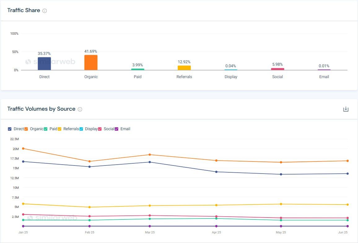 Источники трафика в Беларуси за первое полугодие 2025 года / Фото Insight News