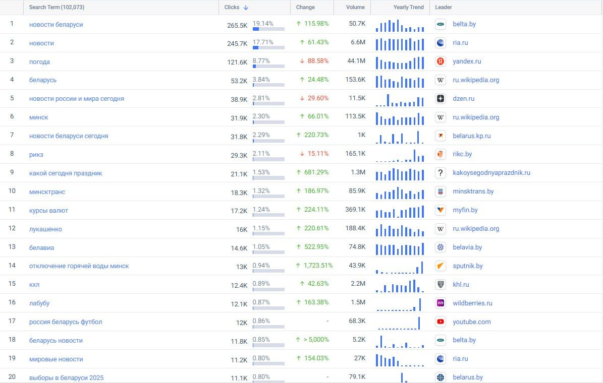 Это свидетельствует о доминировании кремлевских медиа в информационной конкуренции за белорусскую аудиторию. Важно подчеркнуть, что даже санкции и ограничения со стороны ЕС не снизили их видимости в поисковой выдаче, ведь алгоритмы Google ранжируют эти ресурсы высоко благодаря их раскрученности и огромным объемам контента.