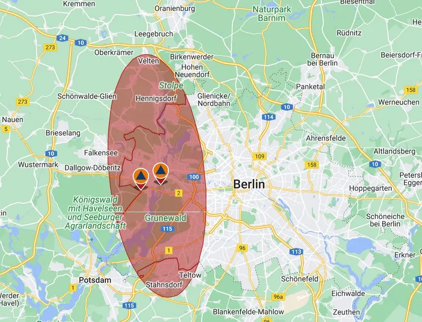 Ожидается, что облако дыма пройдет над Штеглиц-Целендорф, Шарлоттенбург-Вильмерсдорф, Шпандау, Тегель, а также к западу от Райникендорфа над Берлином.