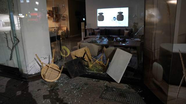 Участники беспорядков бросали камни в правоохранителей, крушили автомобили и витрины магазинов.