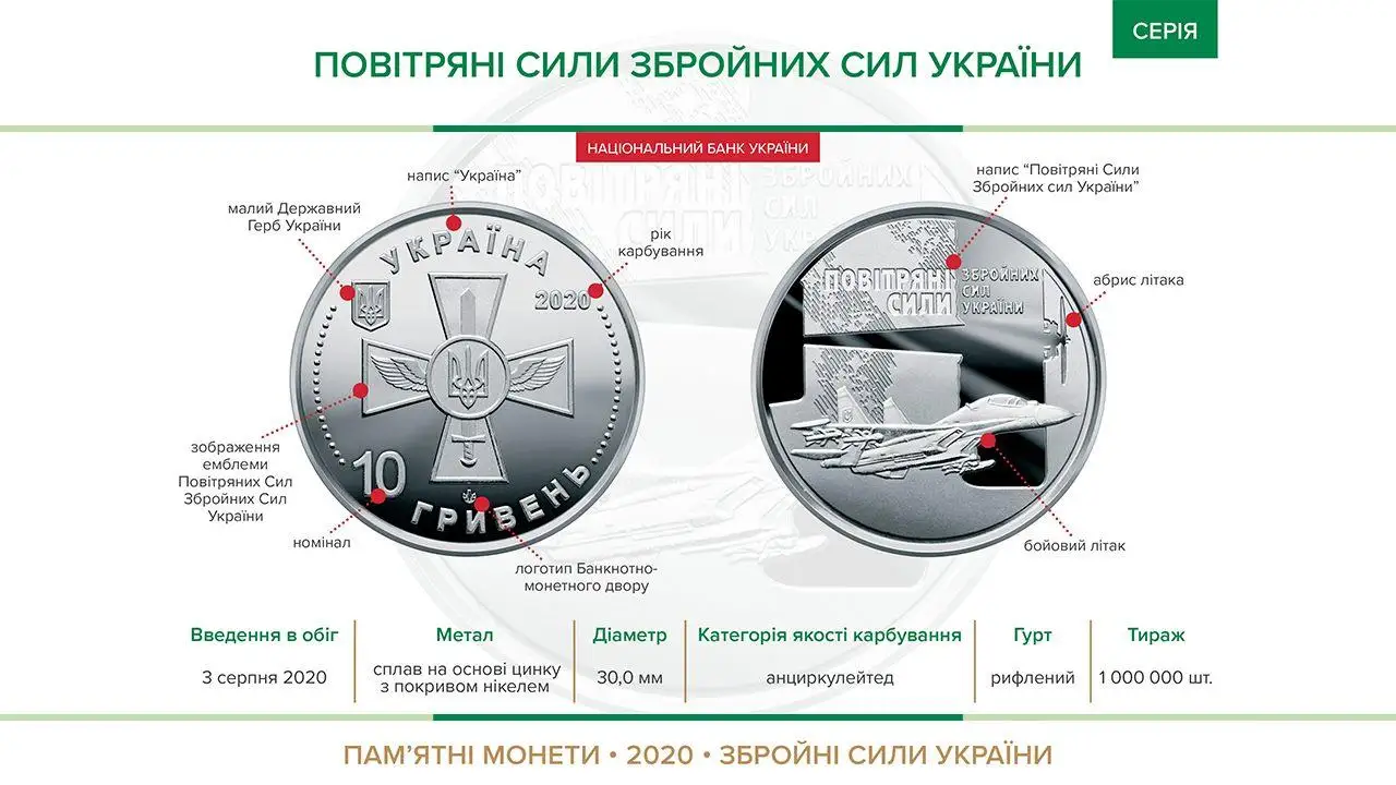 Отметим, что НБУ выпустил ко Дню Воздушных сил ВСУ памятную монету номиналом в 10 гривен.