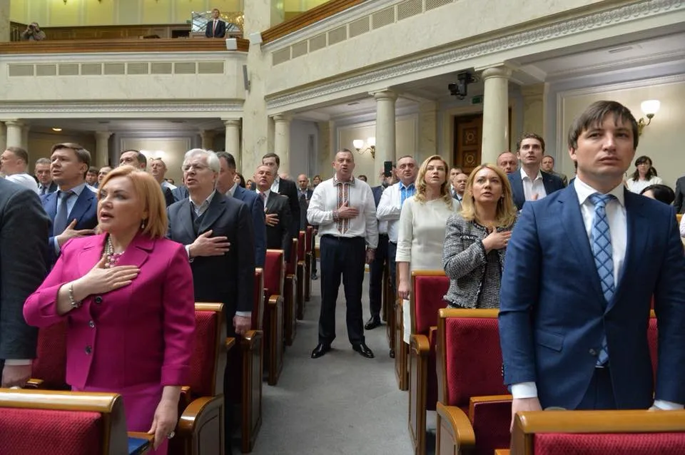 Депутаты поют гимн после принятия языкового закона // Facebook Iryna Gerashchenko