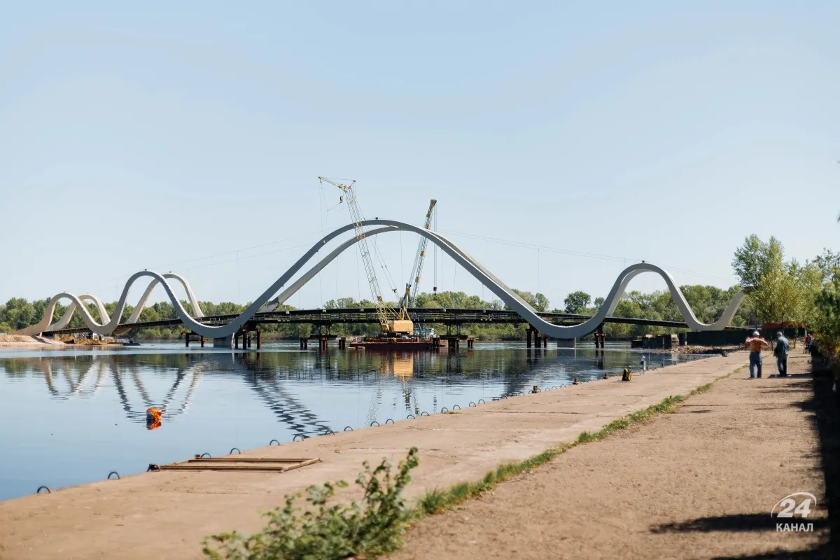 Самое заметное открытие этого года – пешеходный мост-волна на Оболонский остров, который открыли 24 мая 2024 года. Он соединяет парк Наталка на Оболонской набережной с рекреационной зоной на Оболонском острове. Строительство моста началось в 2020 году, но из-за полномасштабного вторжения России проект приостановили, а работы возобновили только в 2023 году.
