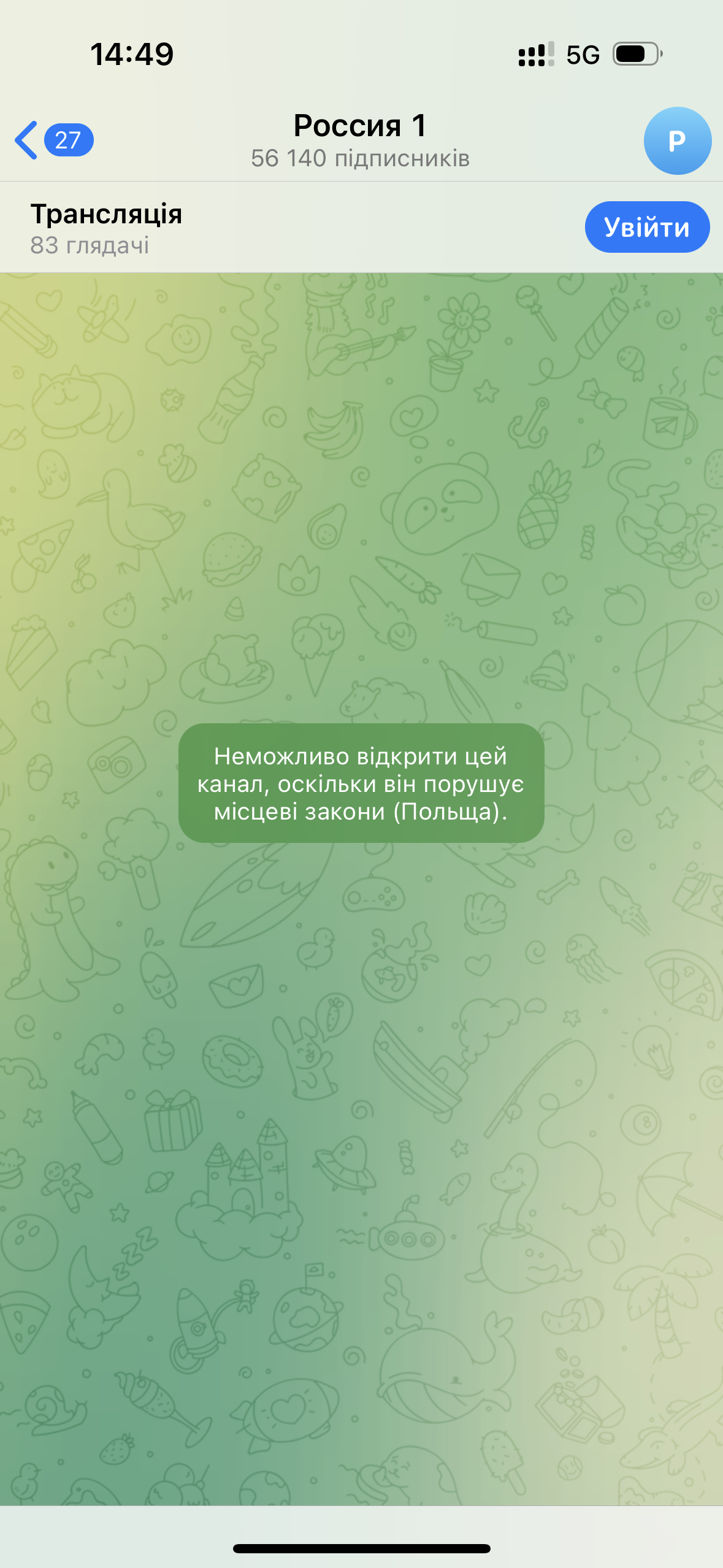 По состоянию на вечер 28 декабря ограничения российских новостных каналов в Telegram не затронули украинцев.