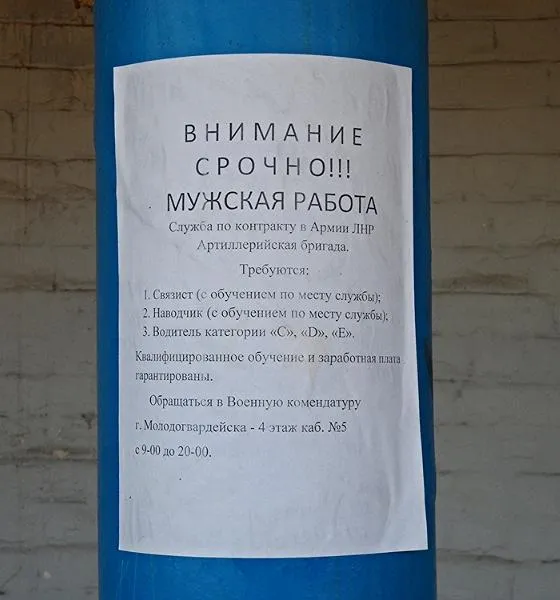 В Луганском Молодогвардейске распространяют объявления, в которых призывают вступить на основе контракта в артиллерийскую бригаду "армии ЛНР".
