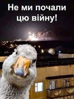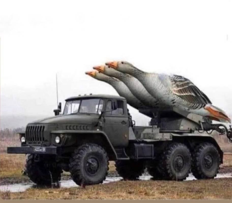 Также в сети показали "вероятный запуск" гусей из РСЗО. И даже обнародовали гуся на фоне взрывов с надписью "не мы начали эту войну!".