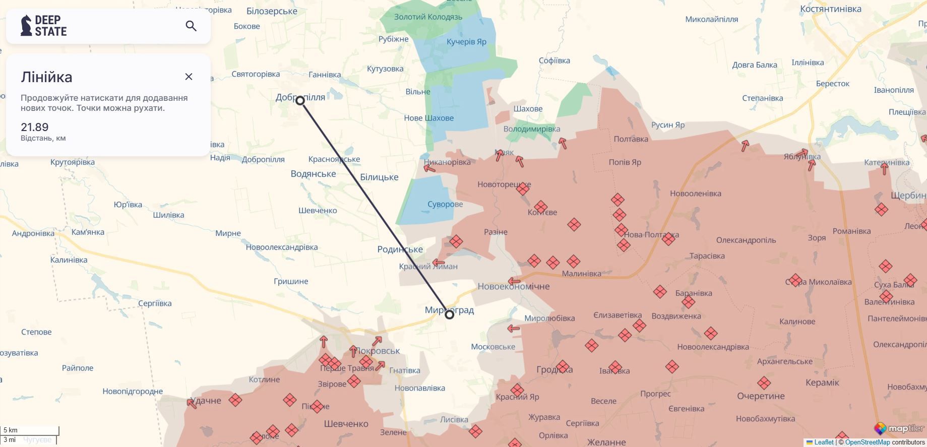 Расстояние между Мирноградом и Добропольем – 22 километра.