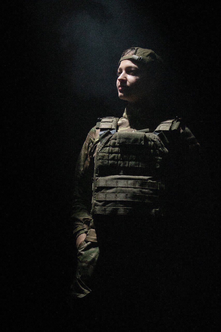 Тогда как офицер психологической поддержки "Искра" отмечает, что война не выбирает по полу. Она подчеркивает: "Я держу оружие рядом с мужчинами. И знаю: в строю все равны. Отвага не имеет лица и не имеет гендера".