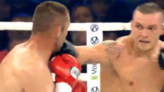 Усик начинает с мощной двойки в голову. Вентер непреклонен. Южноафриканец — непростой соперник. Серия мощных ударов от Усика. Это нокаут, друзья! Поздравляем украинца!