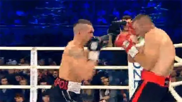 Усик мощно пробивает по корпусу южноафриканца. Хороший прямой в голову — достаточно ощутимо для Вентера. Наш боец дежурит удары 3 голова-корпус. Раунд однозначно за Усиком!