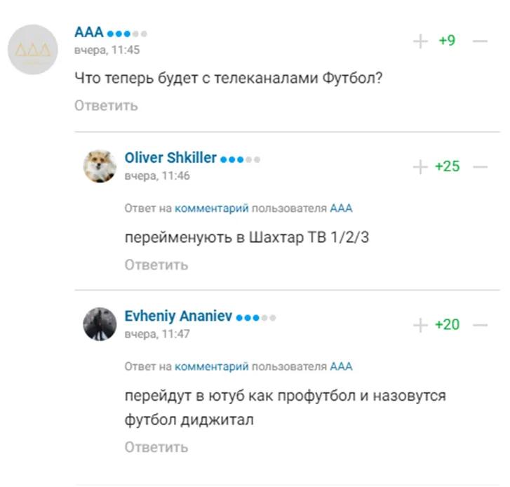 В комментариях к новости болельщики отметили, что качество контента телеканалов Футбол 1/2/3 в последние годы достаточно серьезно снизилось и им нужна реконструкция.