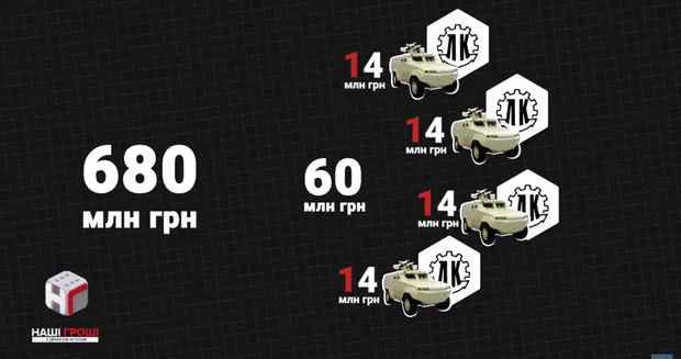 Кроме финансирования непосредственно обустройства границы, 59,5 миллиона гривен проекта потратили на покупку боевых бронемашин "Тритон" у завода "Кузница на Рыбацком" Петра Порошенко.