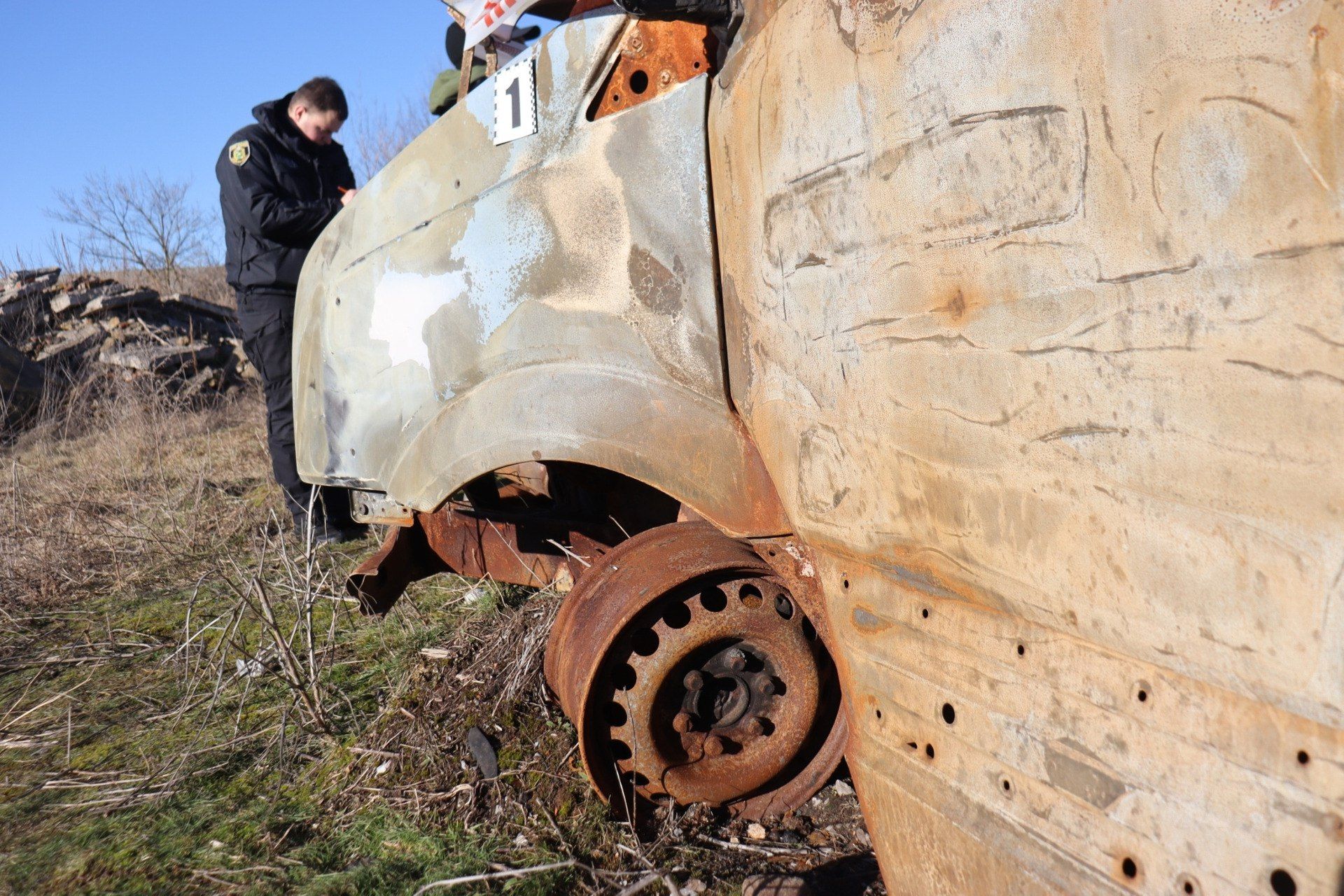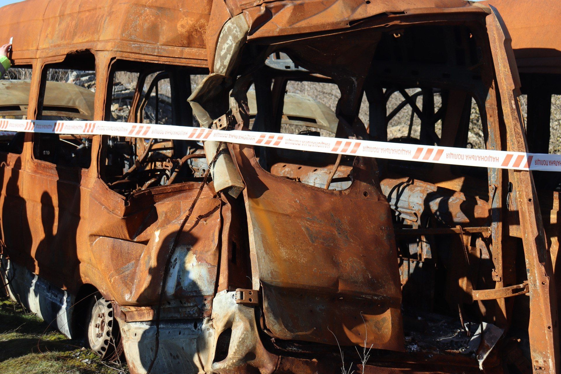 Трагедия произошла еще 14 апреля 2022 года. В первый день оккупации поселка Боровая российские захватчики расстреляли два автобуса с гражданскими.