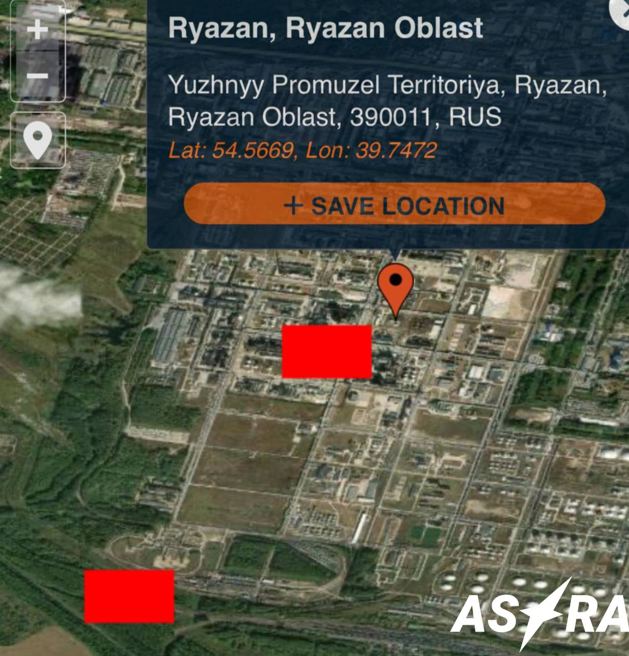 Система мониторинга пожаров спутников NASA FIRMS зафиксировала пожар на территории объекта Рязанской нефтеперерабатывающей компании, принадлежащей "Роснефти".