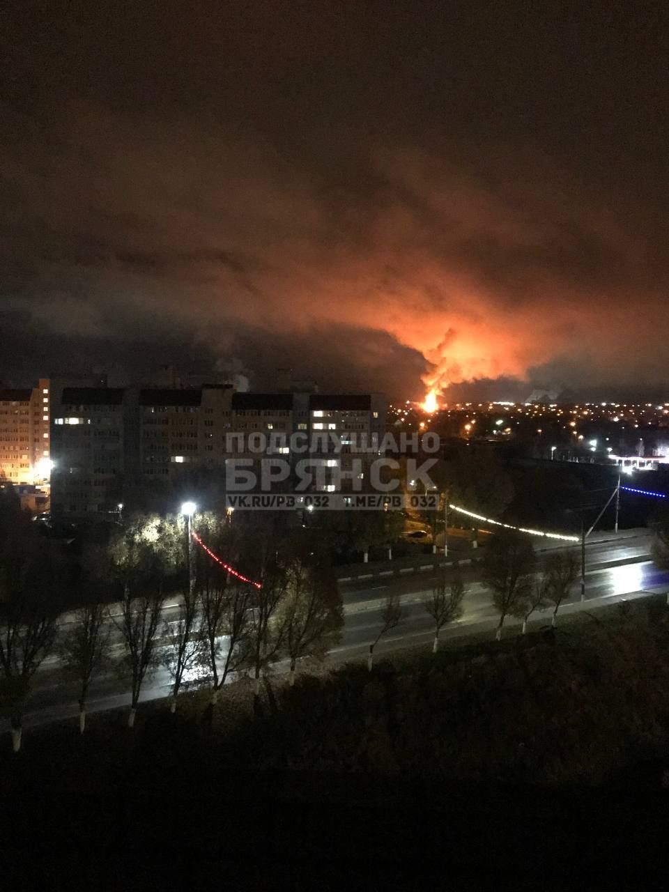 Жители Брянска ночью наблюдали масштабный пожар / Фото из телеграмм-каналов