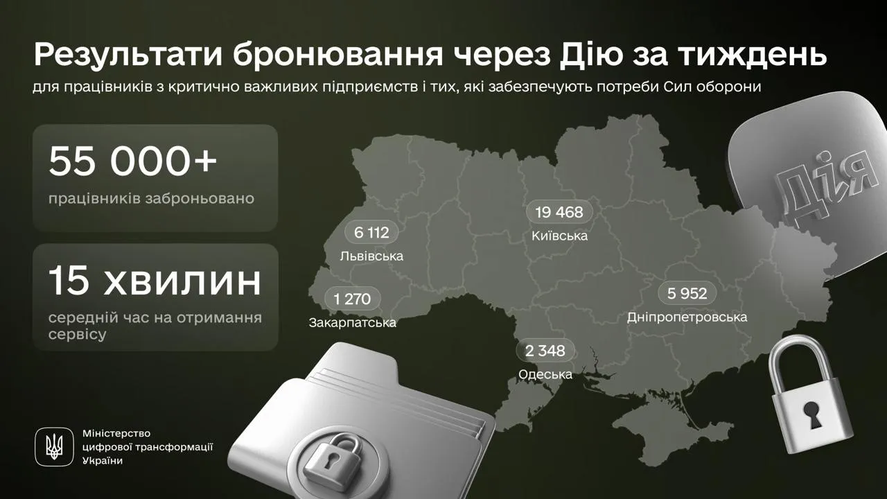 55+ тысяч работников критически важных предприятий забронировали через Дию за неделю,