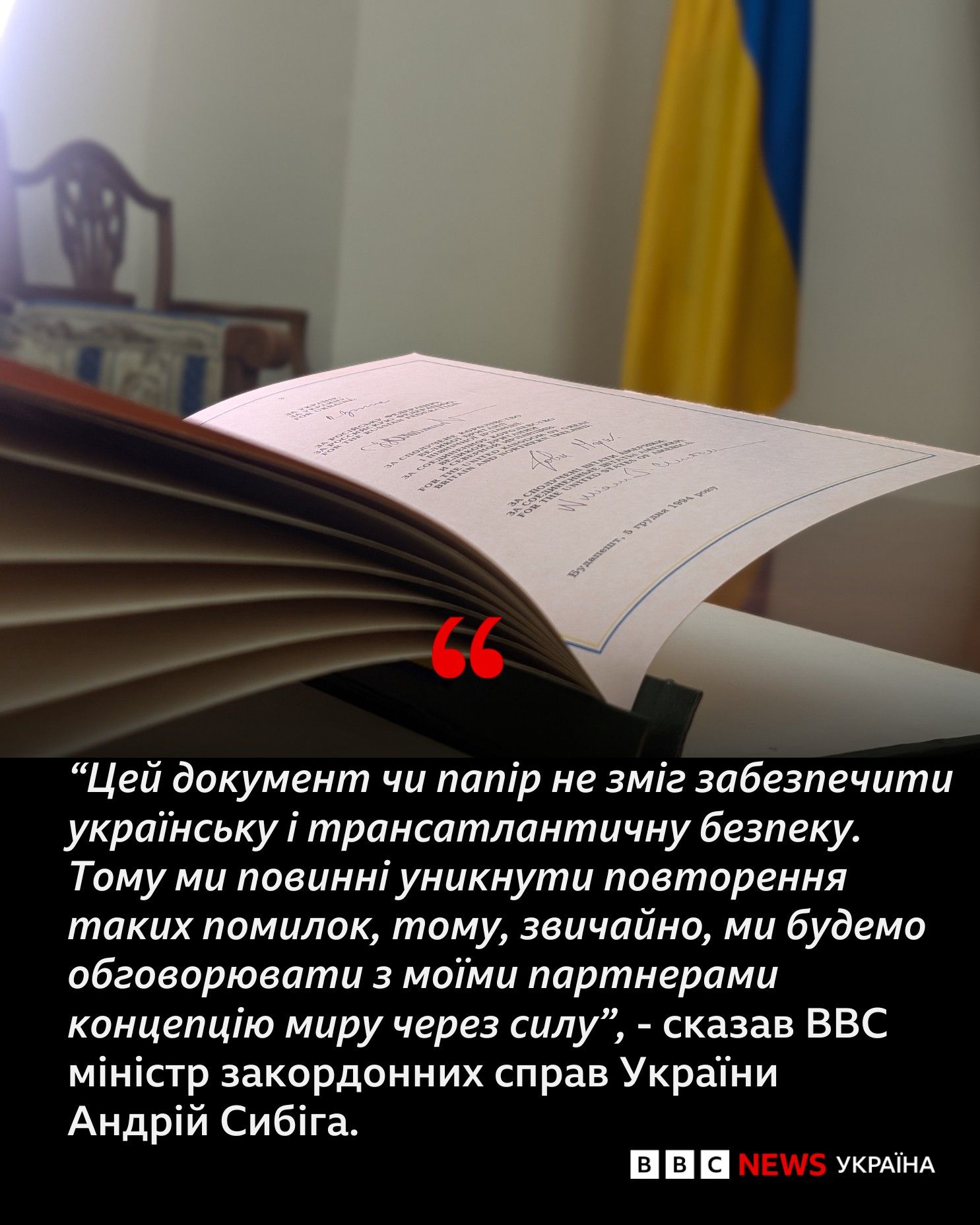 "Этот документ должен был обеспечить Украине гарантии безопасности, суверенитета и территориальной целостности в обмен на отказ от третьего в мире по потенциалу ядерного арсенала. Меморандум должен был стать значительным этапом в укреплении глобального ядерного разоружения и служить примером для других государств в отказе от ядерного оружия", – заявили в министерстве.