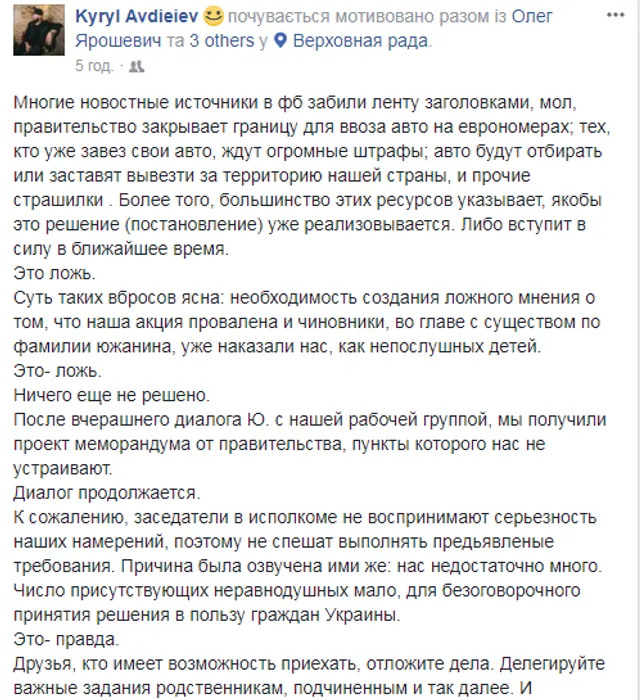 Как отметил в посте в соцсети Facebook один из активистов – нардепы не воспринимают проблему нерастаможенных авто как общественно важную, указывая на немассовость протестующих.